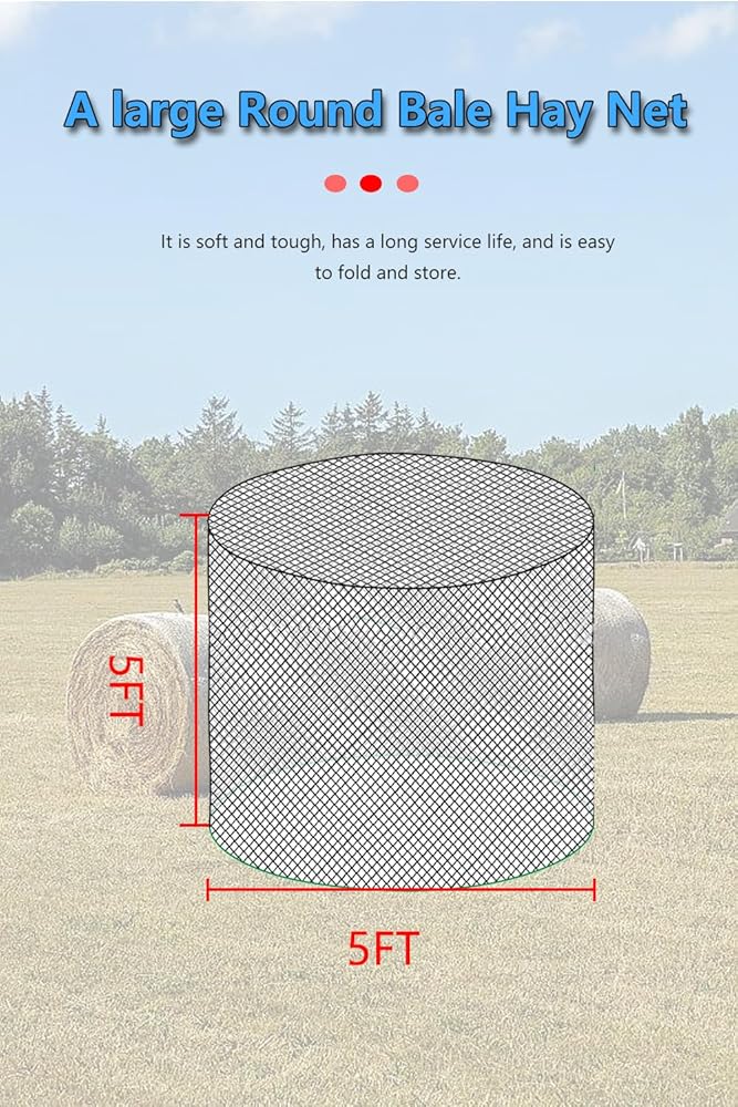 5x5FT عالمي و30 ثانية تثبيت سريع | شبكة بالات مستديرة شديدة التحمل مقاس 5 × 5 أقدام تناسب جميع البالات المستديرة في أمريكا الشمالية؛ تجميع لمدة 30 ثانية لشخص واحد، بدون أدوات إضافية، الاستخدام المباشر مع وحدة تغذية البالات المستديرة