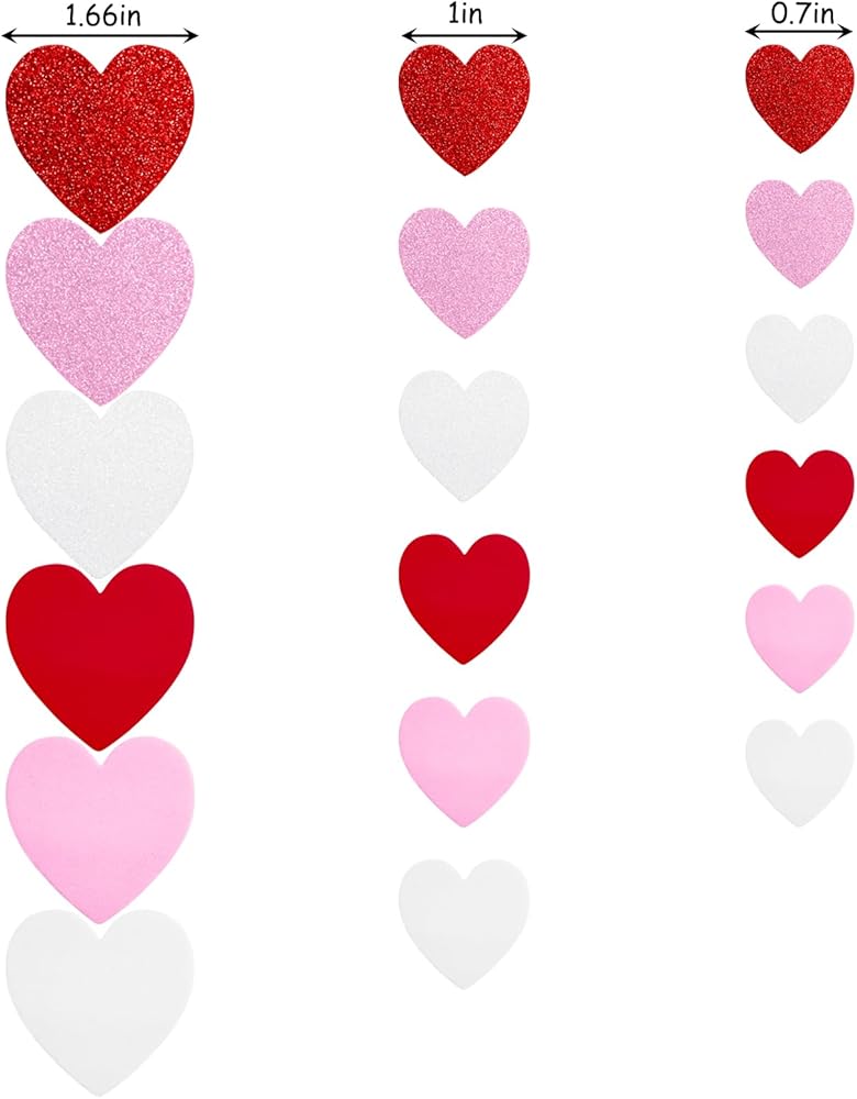 • Package Include:These heart-shaped stickers with 3 sizes and 3 different colors: red, pink, white. some hearts stickers have glitter on the surface, some hearts stickers without flash powder