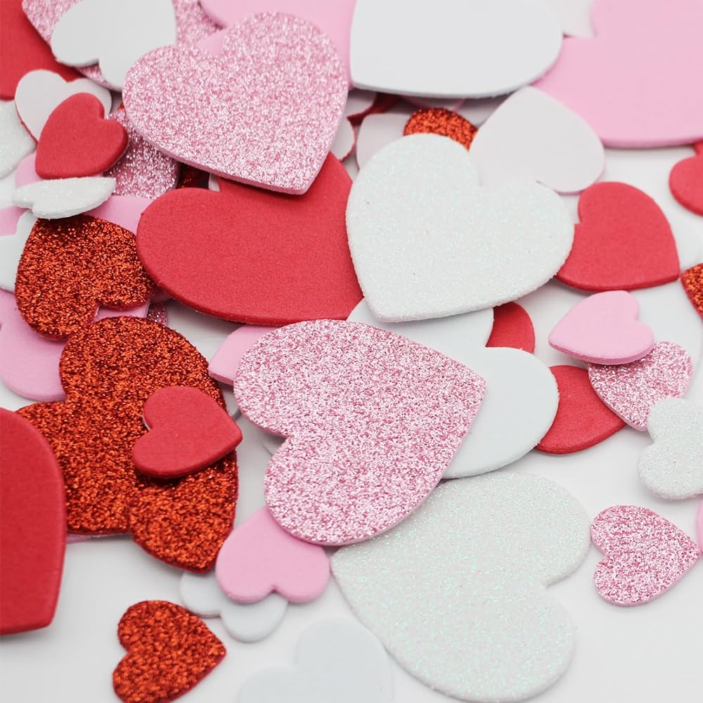 240 قطعة من ملصقات القلب ذات قلوب إسفنجية ذاتية اللصق، 3 أحجام باللون الأحمر اللامع والوردي والأبيض اللامع، مثالية للحرف اليدوية في عيد الحب، وبطاقات المعايدة التي تصنعها بنفسك، وبطاقات عيد الأم
