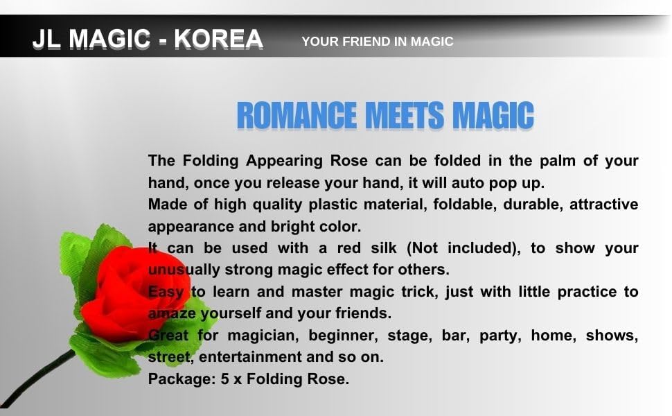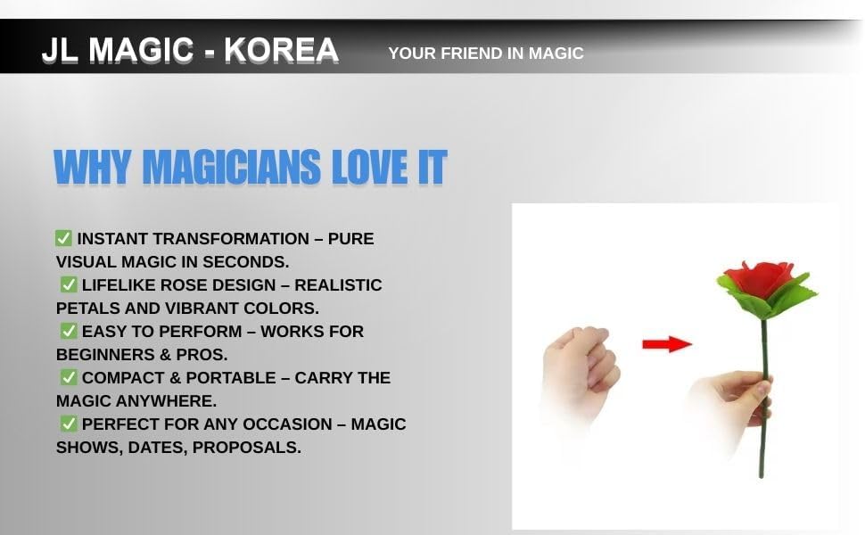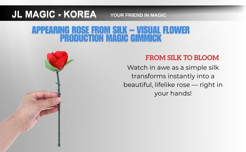 - 🌹 إنتاج الزهور الفوري: وردة تظهر بطريقة سحرية من وشاح فارغ على مرأى ومسمع