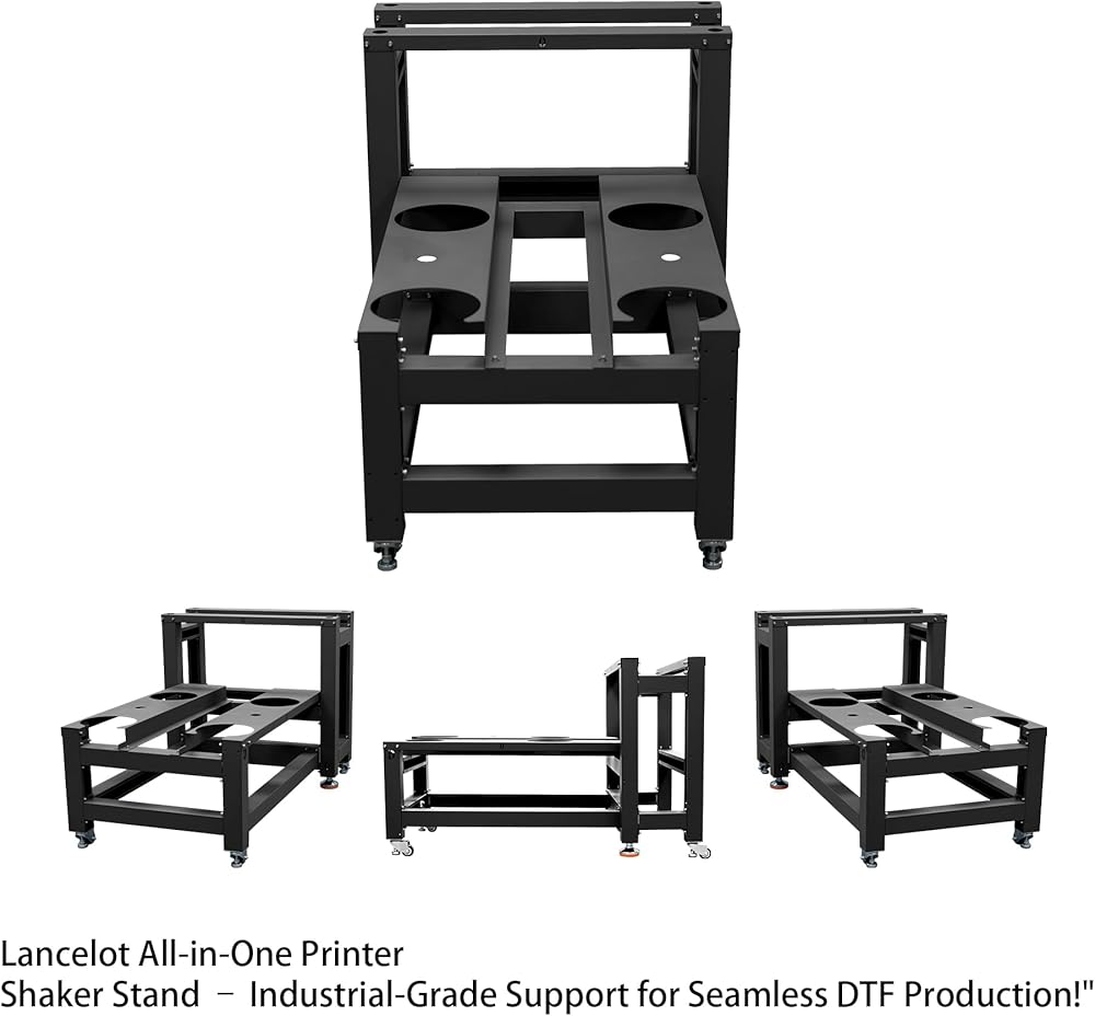 دعامة تثبيت الكل في واحد لطابعة Lancelot DTF ومسحوق شاكر - توفير المساحة، والتحكم في الاهتزاز، والتوافق مع الاستوديوهات الصغيرة/ورش العمل المنزلية، مصممة للمصممين وعشاق DTF