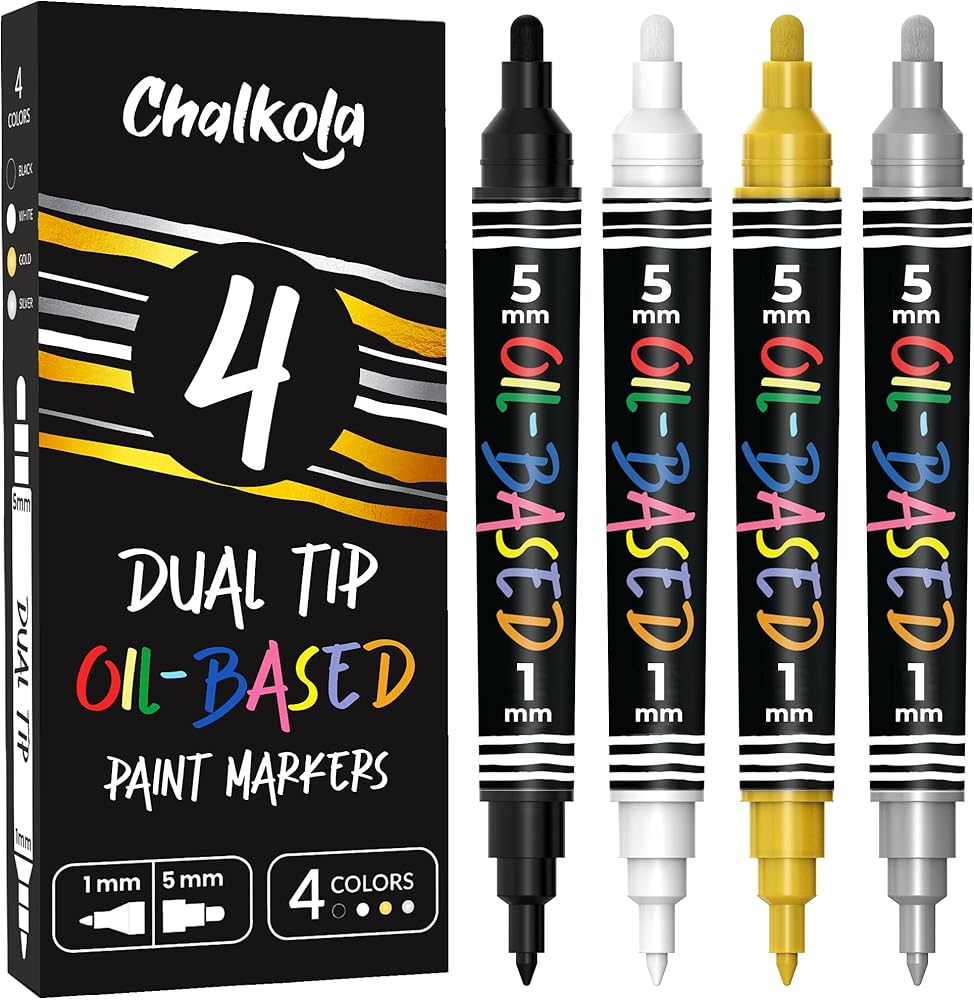 قلم طلاء أسود زيتي من تشالكولا 5 (4 رؤوس مزدوجة، 15 مم جامبو) - أقلام طلاء زيتية للمعادن والنسيج والزجاج والصخور وإطارات السيارات والأثاث والأسطح الخشبية والبلاستيكية - مقاومة للماء ودائمة in Kuwait
