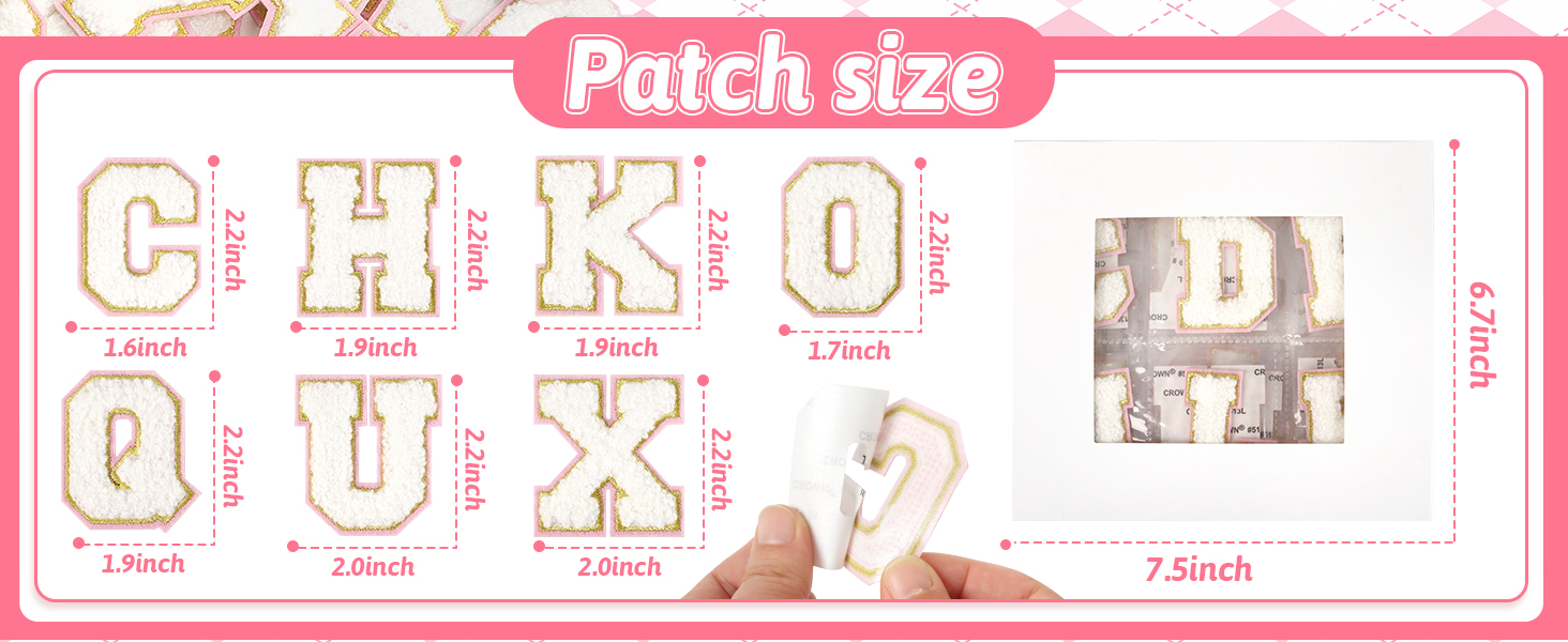 • سهلة الاستخدام: مع دعامة ذاتية اللصق، ليست هناك حاجة للخياطة - ما عليك سوى تقشيرها ولصقها لتخصيص الملابس والحقائب والقبعات وحقائب المكياج وحقيبة الهاتف والأمتعة وحقيبة الغداء وحقيبة الظهر المدرسية وحقائب اليد وغيرها بسهولة. مثالية للإبداعات الشخصية السريعة والجميلة التي تصنعها بنفسك.