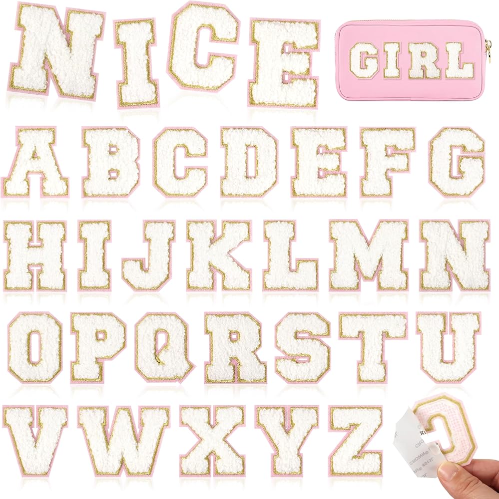 رقعات حروف الشانيل البيضاء من NICEVINYL: 52 قطعة من ملصقات رقعة حروف الشانيل ذاتية اللصق مسبقًا لحقائب الظهر وحقائب القبعات - رقعات حروف داعمة وردية أنيقة تلتصق على الحرف اليدوية اليدوية in Kuwait
