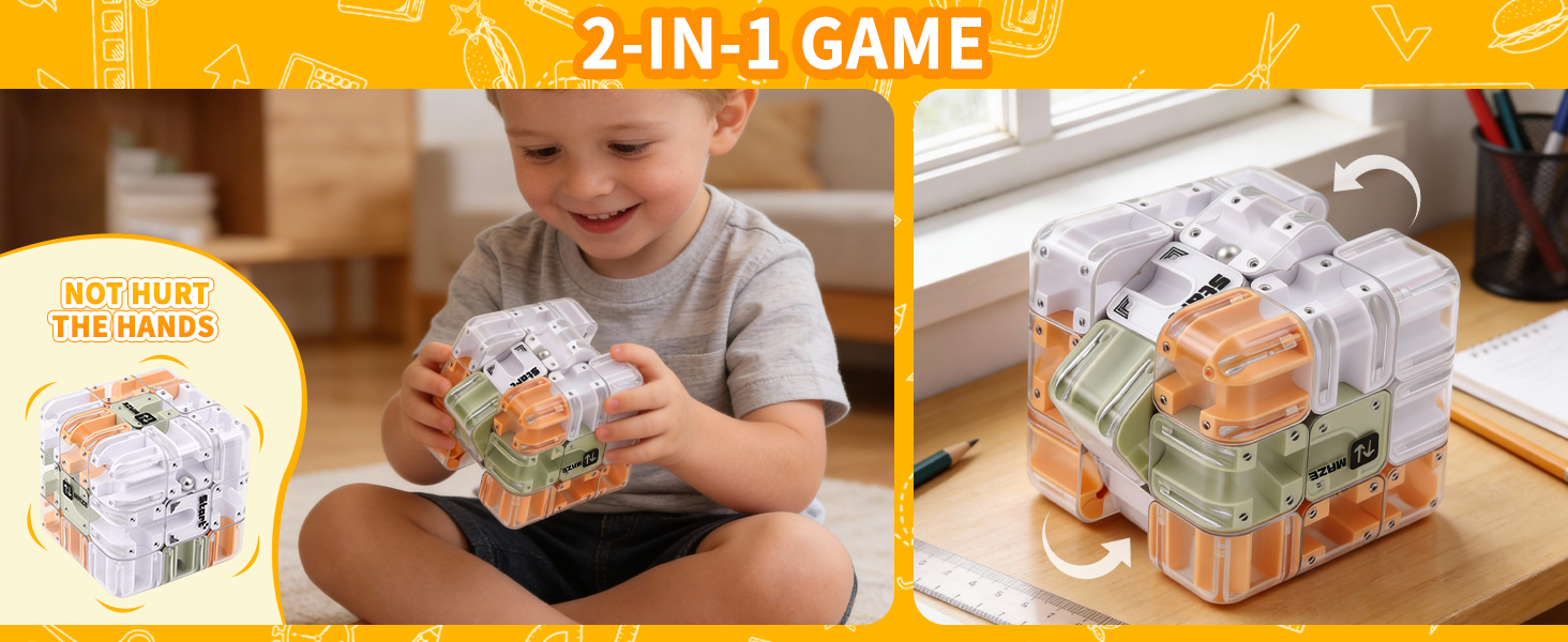 【لعبة مكعب ألغاز ثلاثية الأبعاد اثنين في واحد】يجمع مكعب الألغاز المبتكر هذا بين متاهة الكرة المتدحرجة الداخلية ولعبة المكعب الخارجي المطابق للألوان. يجب على اللاعبين إمالة كل خطوة وتدويرها والتخطيط لها لإكمال كلا التحديين، مما يخلق تجربة ألغاز أكثر جاذبية ومكافأة.