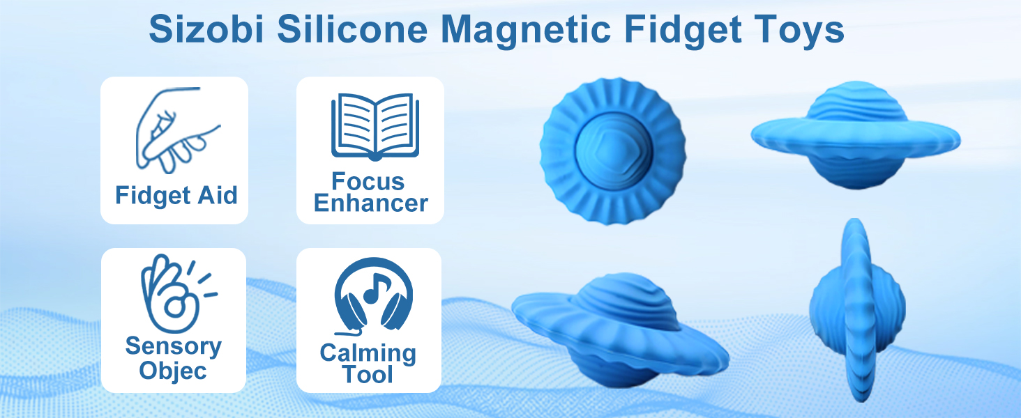 sizobi كرات التململ المغناطيسية سيليكون ألعاب التململ للبالغين والمراهقين، 4 قطع ألعاب حسية لتخفيف التوتر من أجل التوحد واضطراب فرط الحركة ونقص الانتباه والقلق، ألعاب مكتب مكتب UFO الهادئة، مواد تخزين للنساء والرجال في سن المراهقة هدية