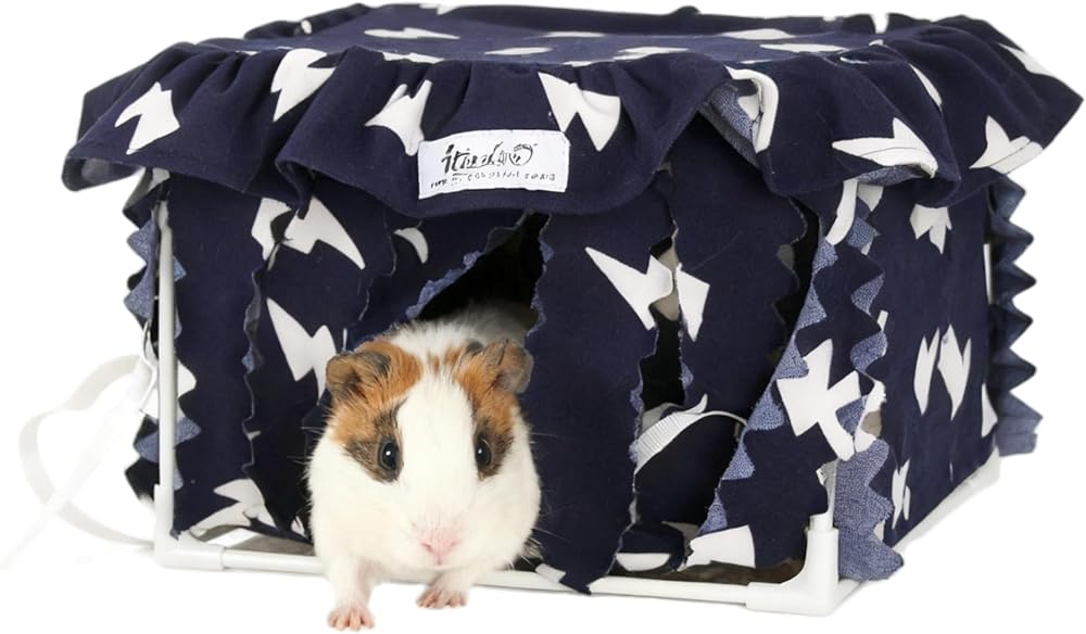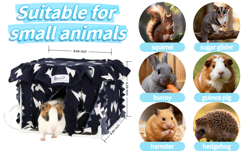 مخبأ خنزير غينيا وسرير الهامستر، قابل للغسل في الغسالة، ملحقات قفص سرير الحيوانات الصغيرة للهامستر الأرنب النمس شينشيلا القنفذ التنين الملتحي والجرذ (أزرق)