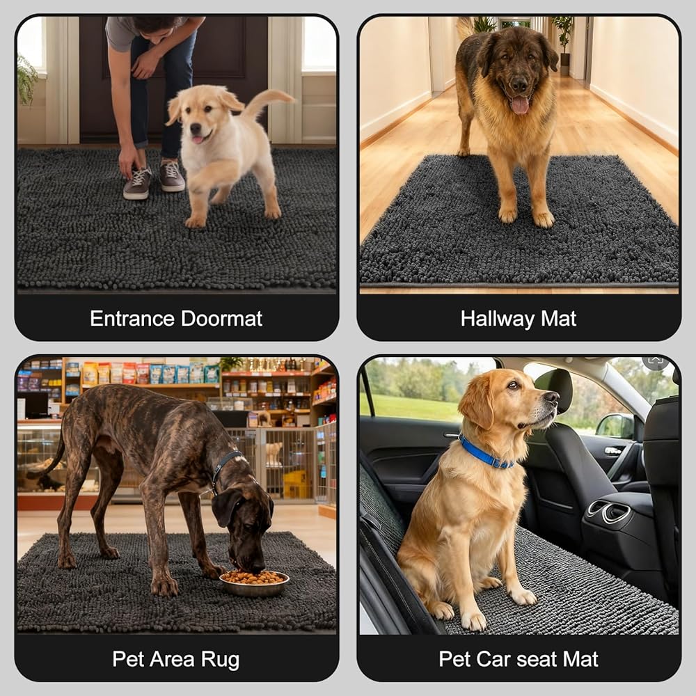 شانيل فخم ومريح: سجادة باب الكلب من WAYNHUI Chenille مصنوعة من كومة قطيفة عالية الكثافة. توفر هذه المادة الموثوقة ملمسًا سميكًا وناعمًا يوفر الراحة أسفل القدم. حتى في الشتاء، يمكنها أن تجلب الدفء لك ولرفيقك المكسو بالفراء
