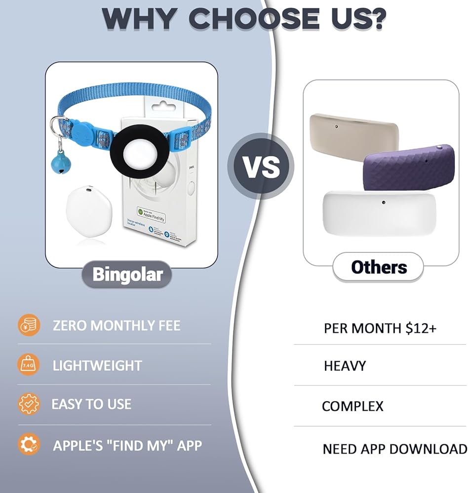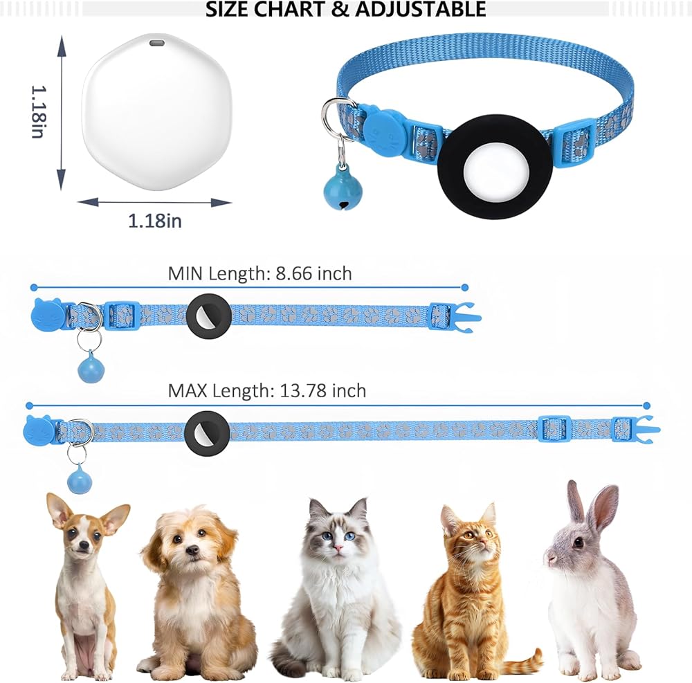جهاز تعقب GPS للقطط، جهاز تعقب صغير للحيوانات الأليفة بنظام GPS مع طوق، طوق تعقب القطط المقاوم للماء IPX8، بدون رسوم شهرية، يعمل مع Apple Find My (iOS فقط)، أجهزة تعقب ذكية للحيوانات الأليفة -Blue-5