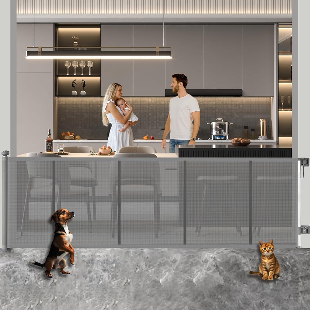 Introducing our Huafly Retractable Baby Gate Extra Wide, the ultimate solution for parents and pet owners seeking safety and convenience. This versatile baby gate fits perfectly in doorways, staircases, and patios, providing a secure barrier for your children and pets both indoors and outdoors. Its sleek, space-saving design easily retracts when not in use, maintaining a clutter-free and aesthetically pleasing home environment. Crafted from high-quality, durable materials, this retractable safety gate is built to withstand daily wear and tear, ensuring long-lasting performance. The sturdy construction offers a reliable safety solution that doesn't compromise on style. Enhanced security is achieved with a dual locking system, featuring both a top lock and bottom fixing accessories to prevent unwanted escapes, giving parents and pet owners peace of mind. Installation is a breeze with two mounting options—drill and no-drill—making it adaptable to various wall types. The included bottom fixing accessories ensure a stable setup, making this baby gate a versatile and user-friendly addition to any home. Whether you need to secure an indoor staircase or an outdoor patio, this extra wide baby gate adapts effortlessly to different settings, ensuring your children and pets explore safely within defined boundaries. Experience the perfect blend of safety, convenience, and style with our Retractable Baby Gate Extra Wide. It's an essential addition for any home that values the well-being of children and pets.