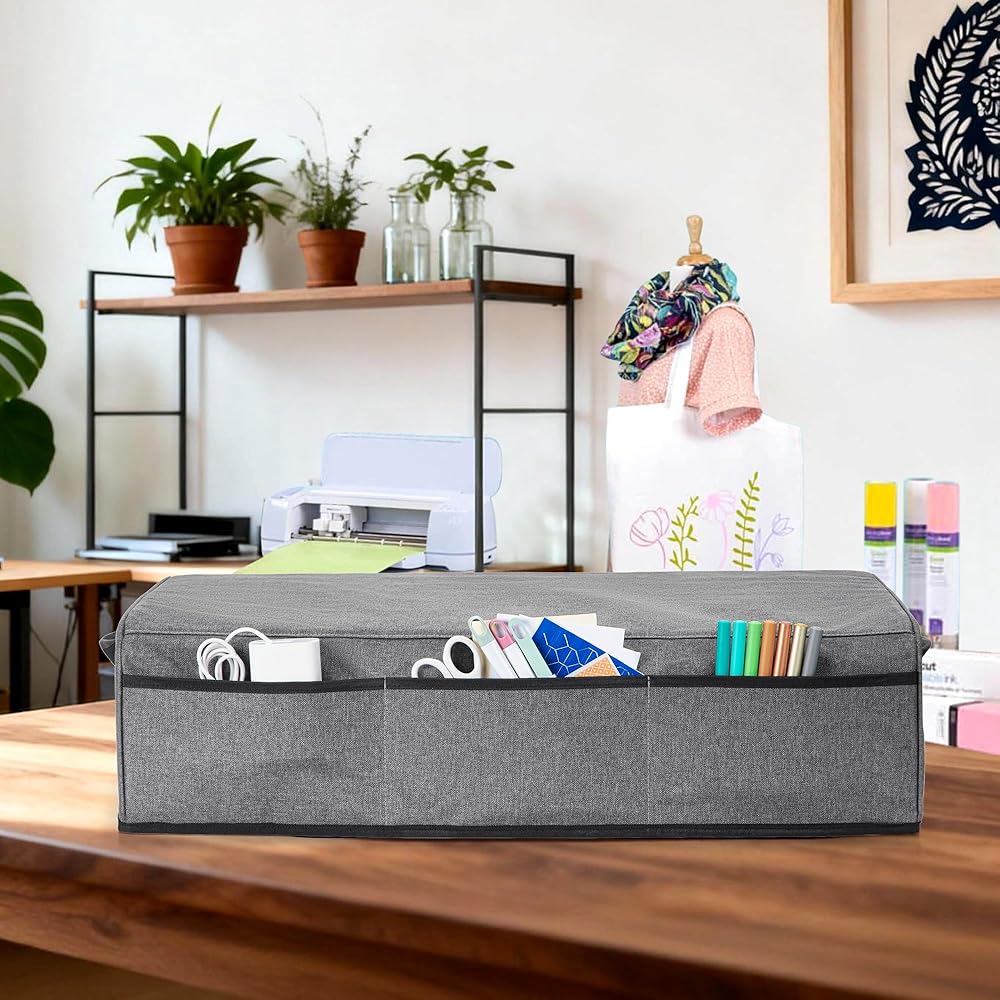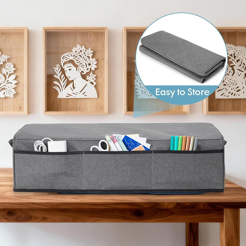 غطاء غبار YARWO متوافق مع مكبس الحرارة الاحترافي Cricut Autopress، غطاء غبار واقٍ مع جيوب ملحقة لآلة الضغط الحراري التلقائي، وحامل التحكم، والكابلات وأدوات DIY الأخرى، رمادي