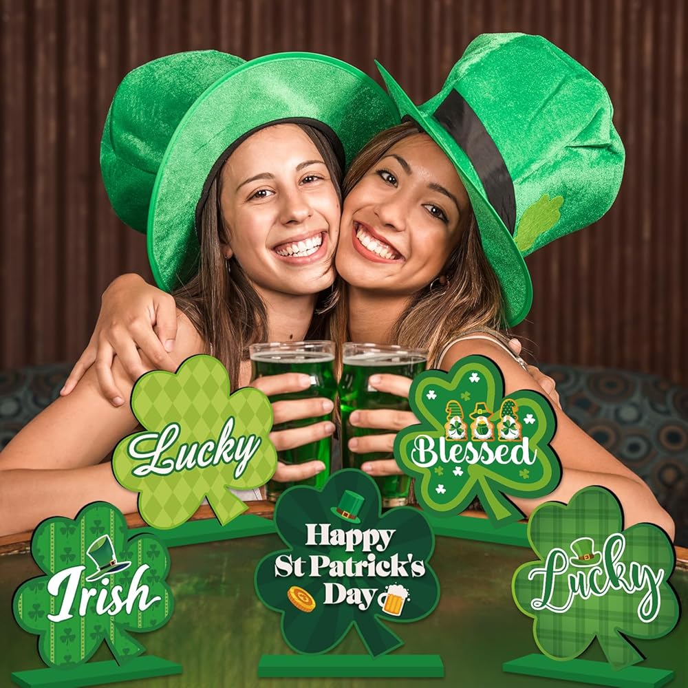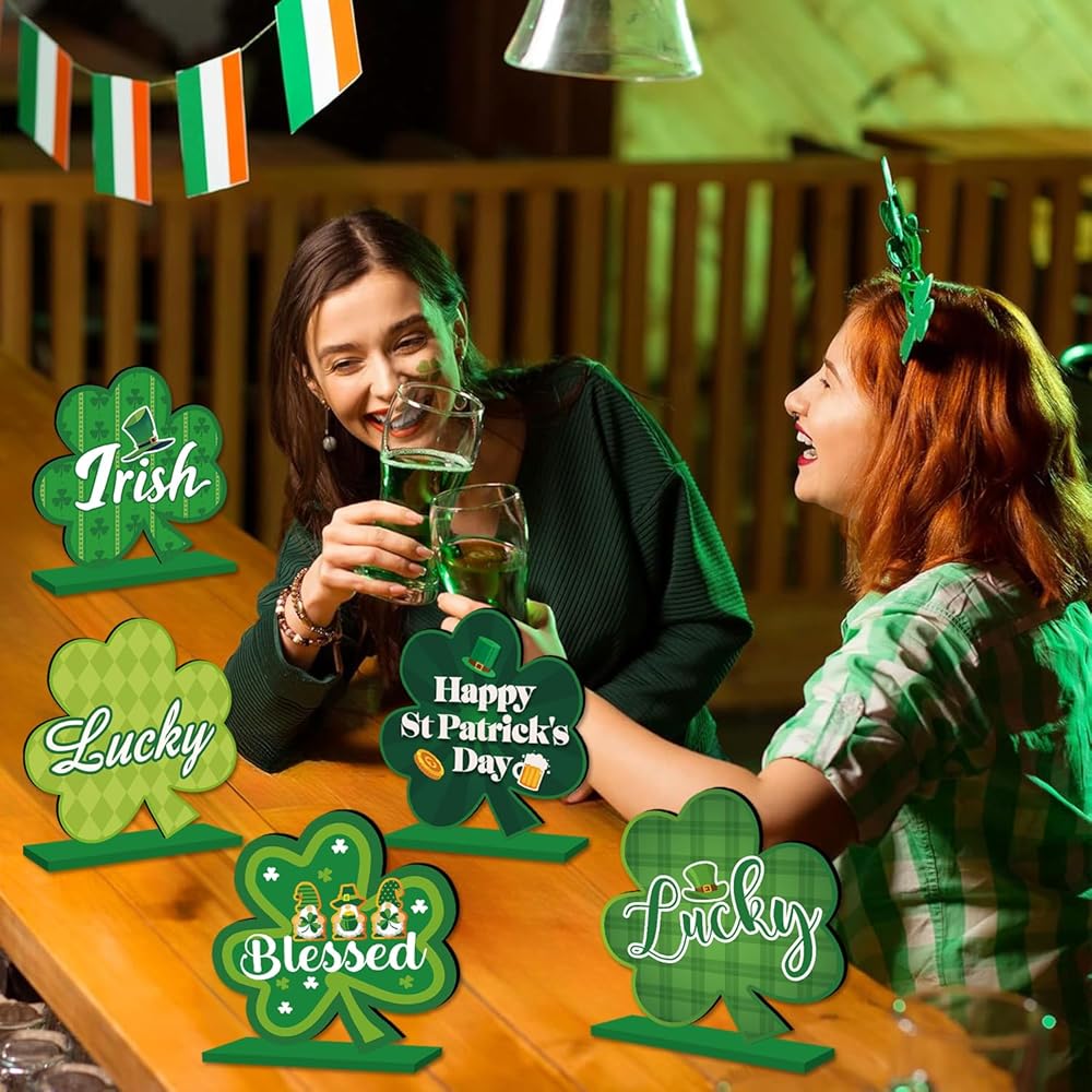 Easy to Use: Our St Patricks Day decorations are approximately 6x3 inches in size, each equipped with a separate base. The installation process is very simple. Just insert the wooden cover plate into the base slot to quickly complete the assembly. After assembly, they stand securely, adding a stylish and festive touch to your table or party decor