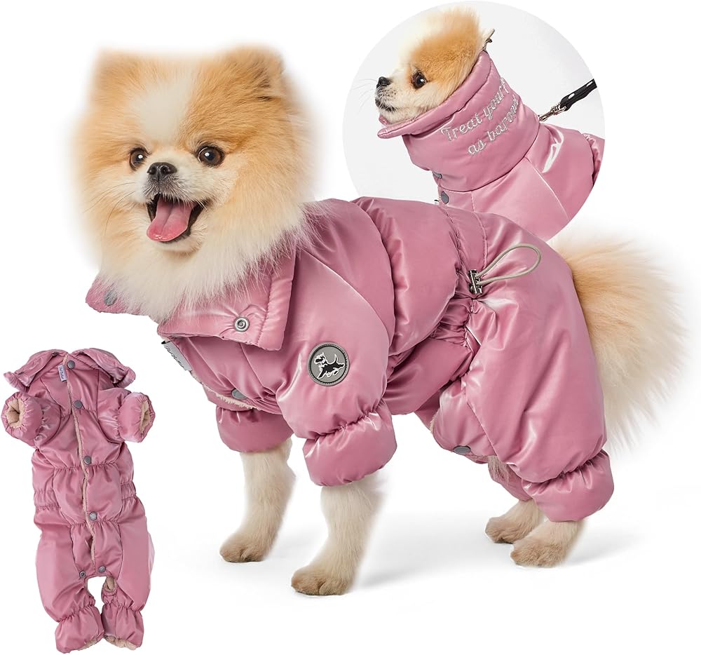 تغطية كاملة للجسم - يوفر معطف الكلاب الشتوي هذا تغطية كاملة بأربعة أرجل، ومصمم بأكمام ممتدة. تحتوي الياقة المرتفعة على رباط لحماية رقبة الكلب في الظروف الباردة. هذا المعطف الشتوي للكلاب ذو الأربعة أرجل مصنوع من مادة طاردة للماء، بينما يتميز الجزء الداخلي ببطانة ناعمة من الفرو الصناعي، مما يضمن الدفء والراحة لحيوانك الأليف أثناء الأنشطة الخارجية. ملابس مثالية للكلاب الصغيرة ومعاطف الكلاب الشتوية للكلاب الصغيرة.