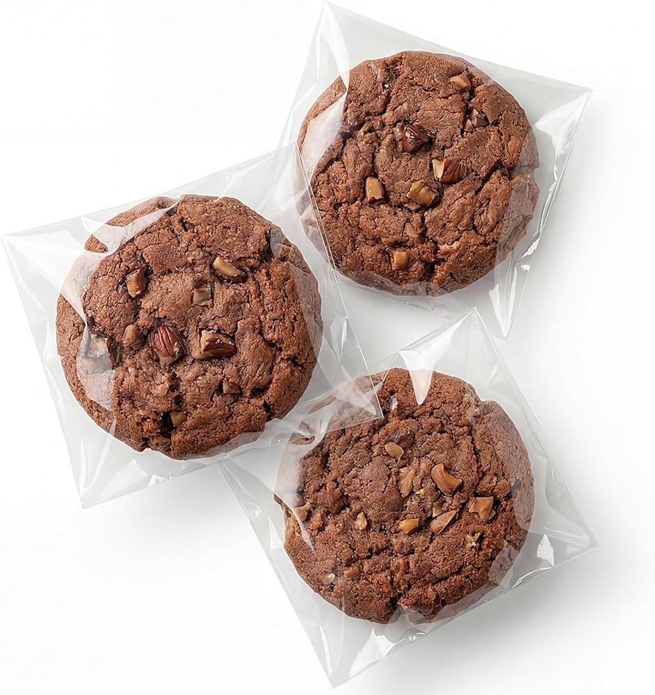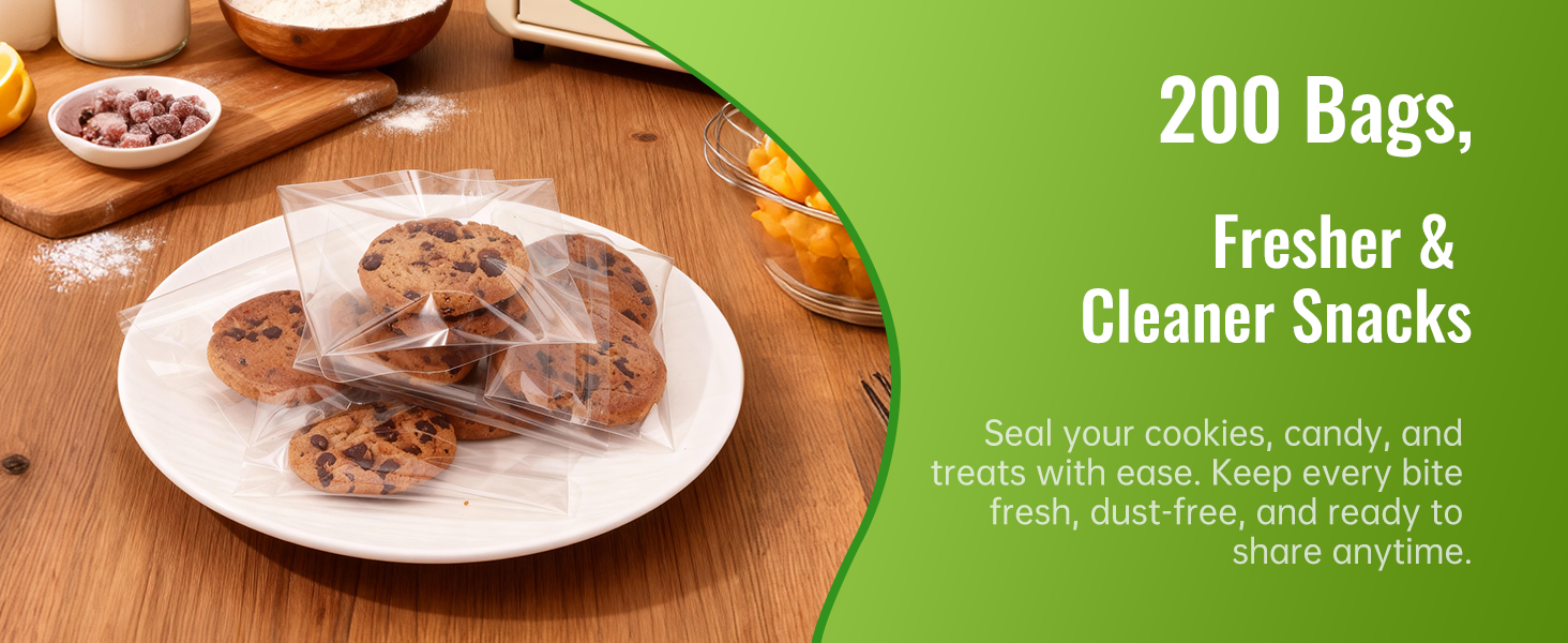 【مادة آمنة غذائيًا】مصنوعة من السيلوفان الفاخر الآمن غذائيًا، هذه الحقائب عديمة الرائحة وغير سامة وآمنة للاتصال المباشر بالبسكويت والحلوى والوجبات الخفيفة. مثالية للحفاظ على حلوياتك طازجة وصحية.