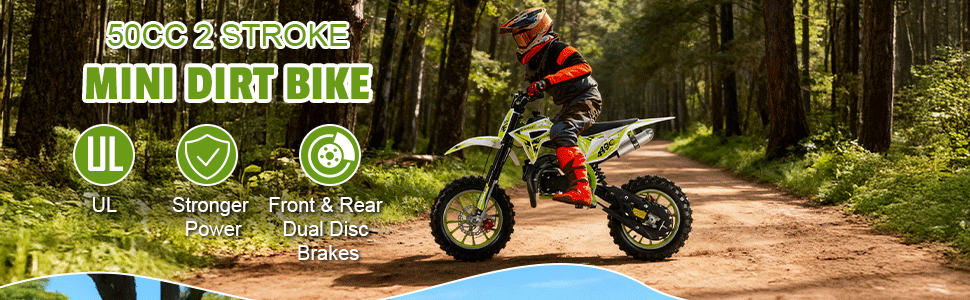🔥 【محرك ثنائي الأشواط 50 سي سي مقاوم للتسرب 】تعامل مع المسارات بثقة! يتميز المحرك 50cc الذي تمت ترقيته الآن بخزان وقود مقاوم للتسرب وسعة متزايدة، مما يوفر سرعات تصل إلى 25 ميلاً في الساعة مع الحفاظ على تسارع سلس. مثالية للمبتدئين، تحاكي مجموعة نقل الحركة هذه الإثارة الحقيقية للدراجات النارية دون إرباك الدراجين الصغار.