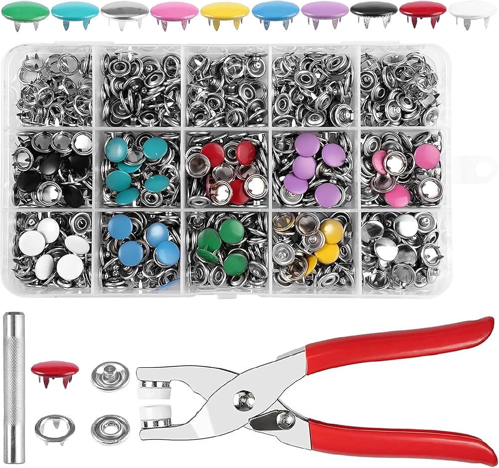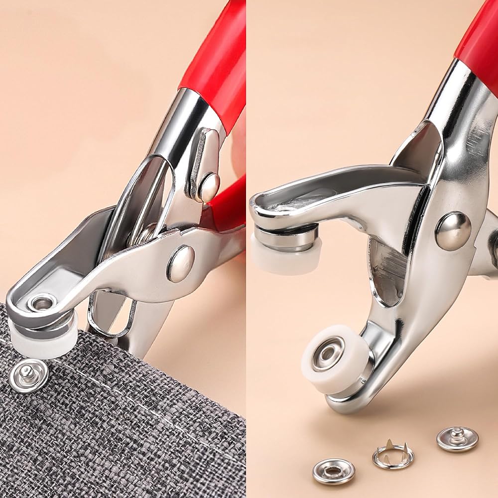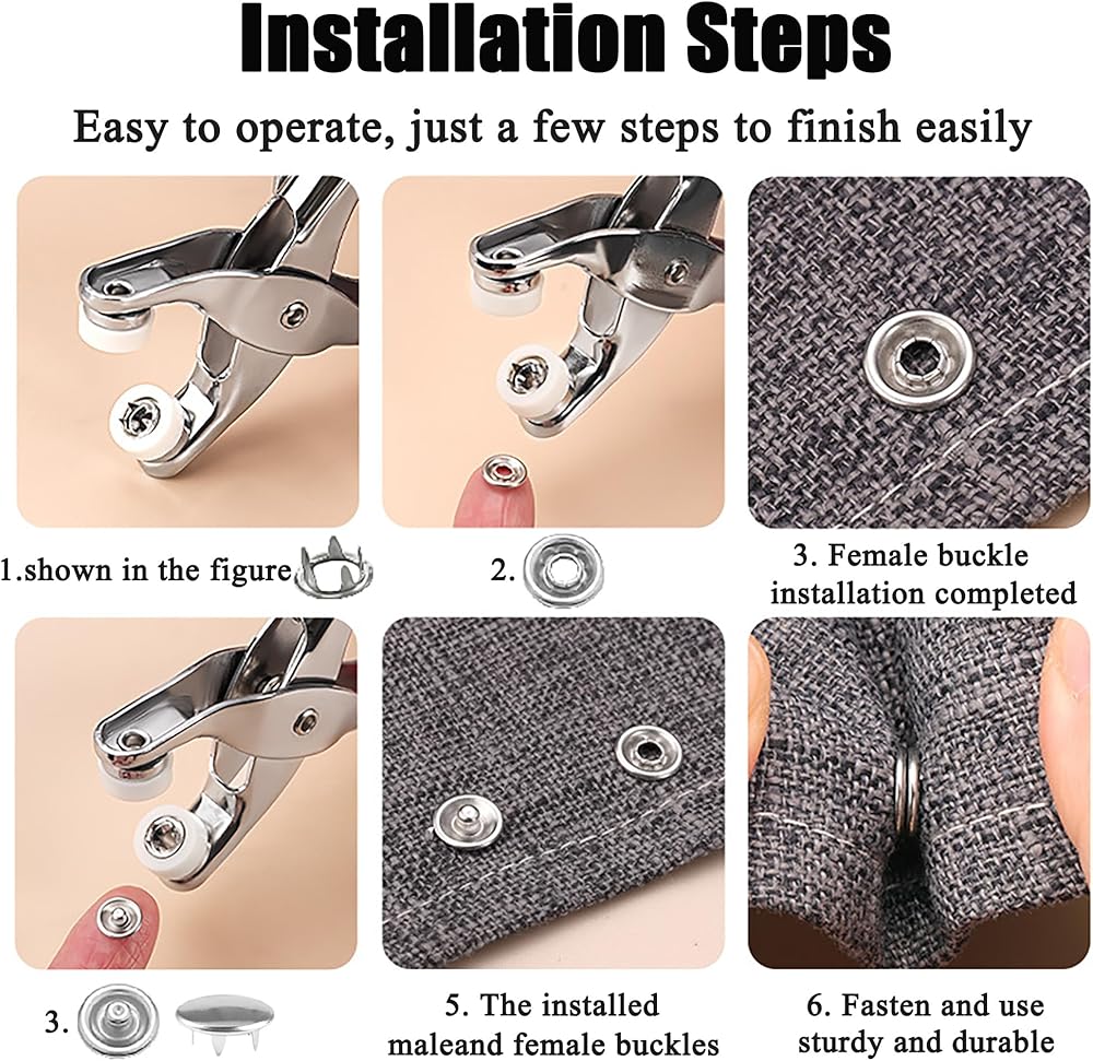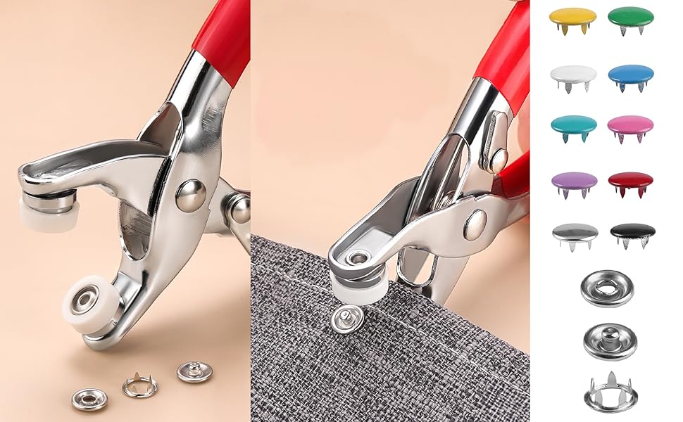 مواد عالية الجودة ومتينة: الأزرار الكبسية مصنوعة من معدن عالي الجودة، وهو قوي ومتين ومقاوم للبهتان والتشوه. تأتي كماشة التثبيت المصنوعة من الألومنيوم بتصميم خاص بمقبض غير قابل للانزلاق، مما يتيح التشغيل السهل والتحكم الدقيق.