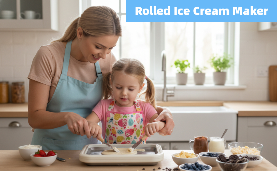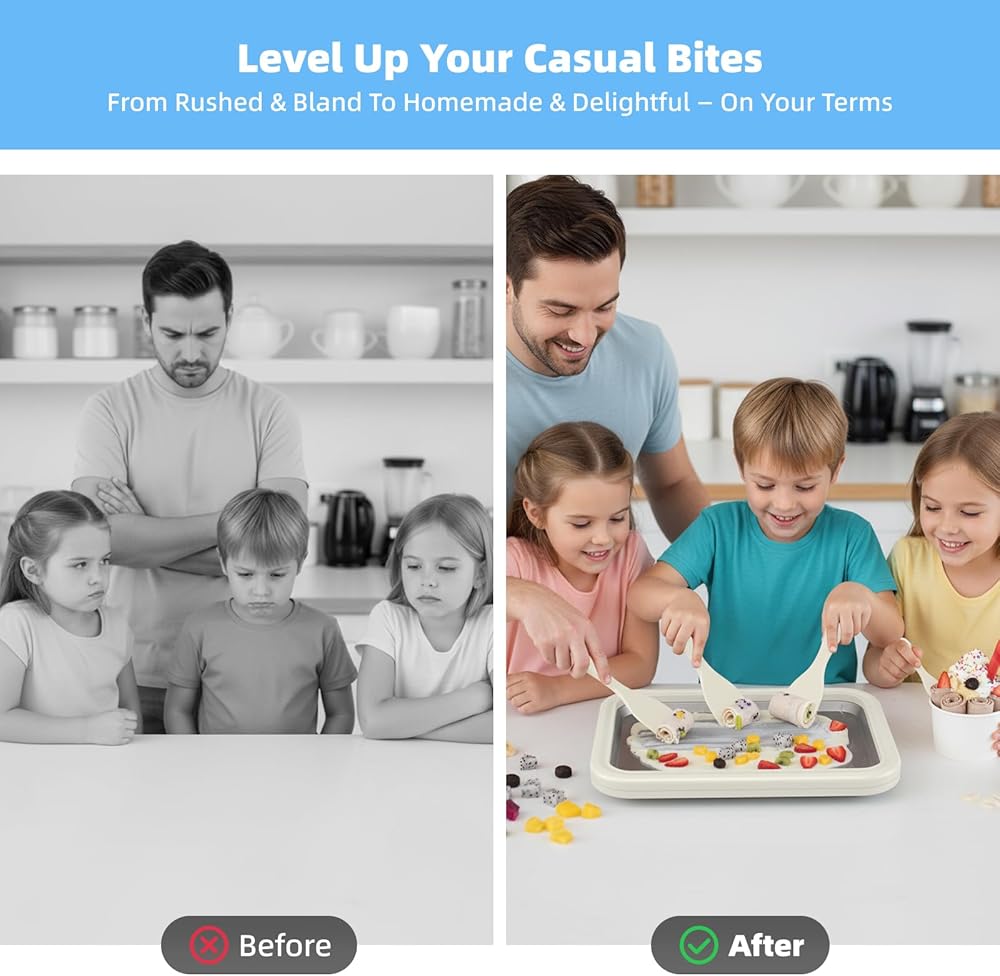 إنتاج سريع للآيس كريم في 3 دقائق لكل دفعة - لا مزيد من الانتظار الطويل! يستخدم صانع الآيس كريم الفوري لدينا نظام تبريد فعال يسمح لك بصنع آيس كريم ملفوف لذيذ في 3 دقائق فقط لكل دفعة. تعمل ماكينة صنع الآيس كريم الدوارة هذه على تحويل عملية التحضير إلى عملية سريعة ومرضية، ومثالية لرغبات الحلوى العفوية أو لترفيه الضيوف