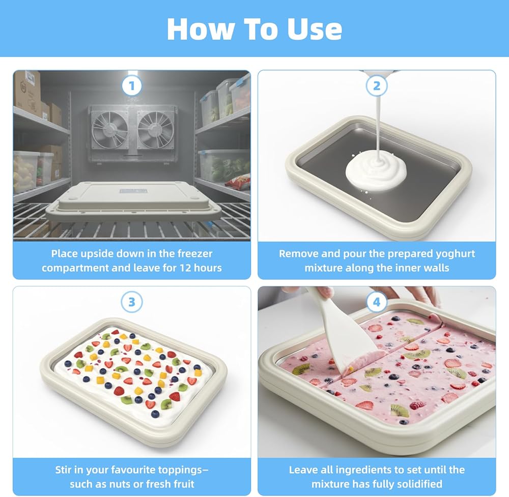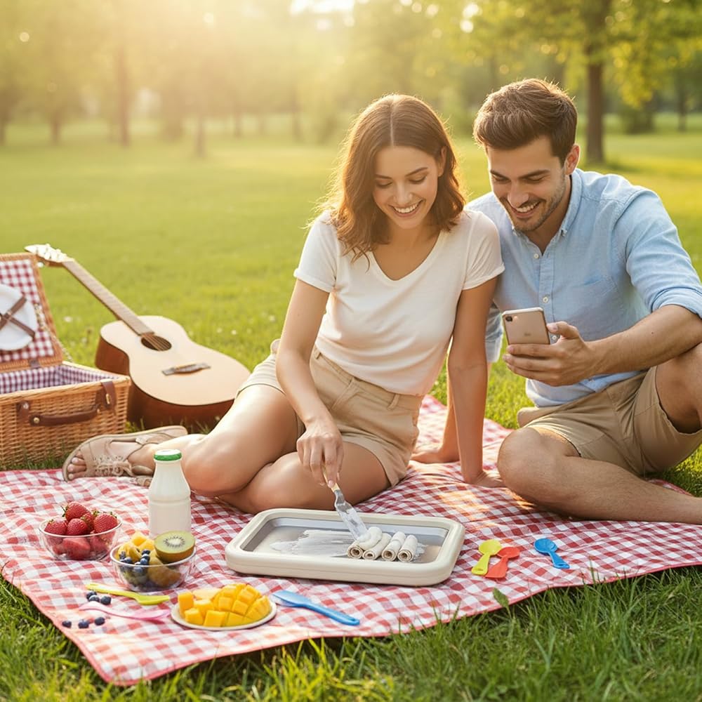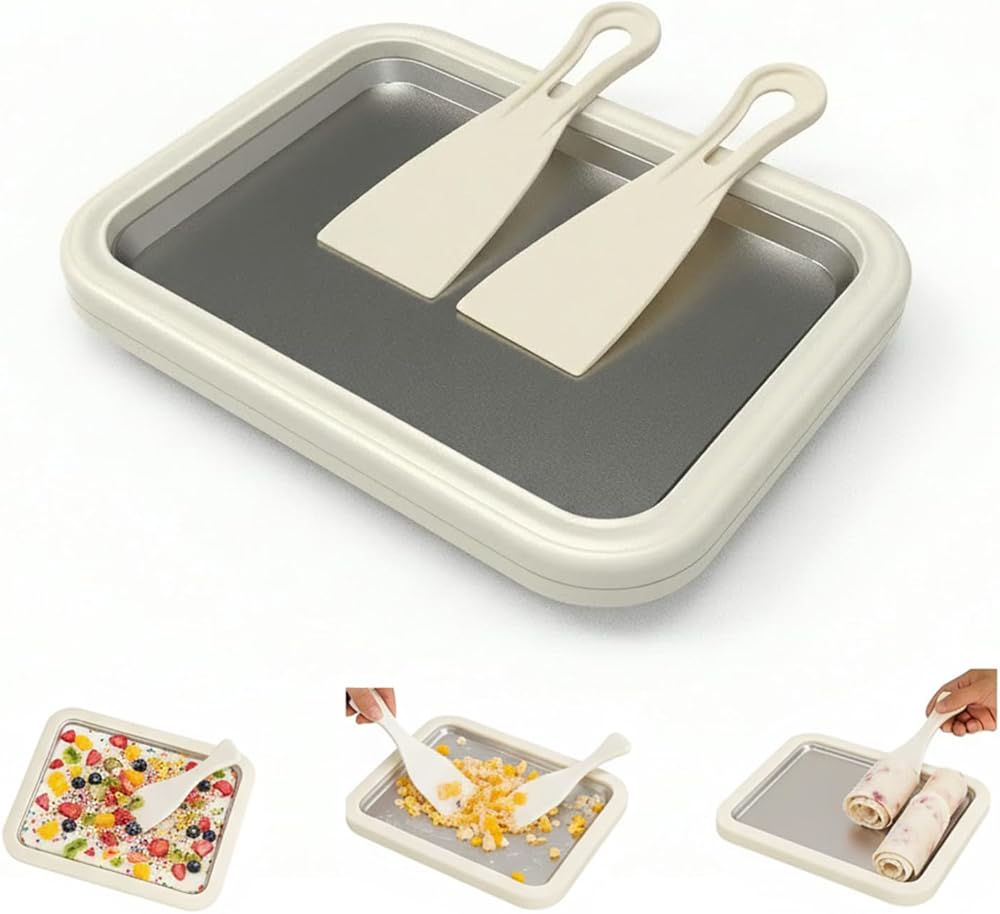 مجموعة كاملة من الآيس كريم الملفوف الكل في واحد - ابدأ في الإنشاء على الفور. تشتمل مجموعة الآيس كريم الملفوفة الشاملة لدينا على صينية كبيرة مجمدة مسبقًا وملاعق مزدوجة - كل ما يلزم لصنع الحلويات على الطريقة الاحترافية. تم تصميم مجموعة صنع الآيس كريم الكاملة هذه لتوفير الراحة، مما يتيح لك صناعة ما يصل إلى 3 حصص في كل جلسة دون الحاجة إلى أدوات إضافية