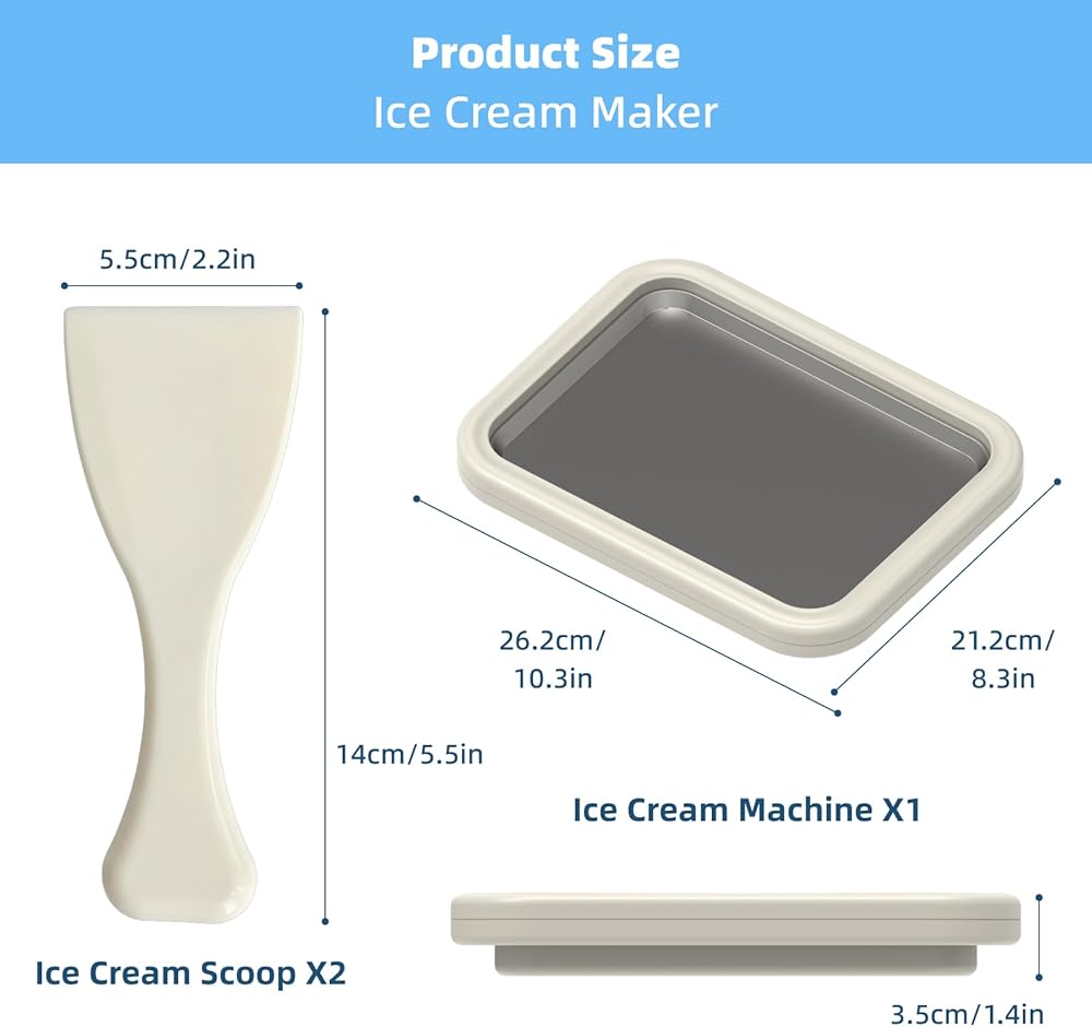 تصميم سهل الاستخدام وآمن ومحمول - استمتع بالإبداع الخالي من المتاعب. تتميز صينية الآيس كريم الملفوفة بحواف مستديرة للتعامل الآمن ولا تحتاج إلى كهرباء، مما يجعلها آلة صنع لفائف الآيس كريم المحمولة حقًا. تصميمه المدمج سهل التخزين والتنظيف، مثالي للاستخدام في أي مطبخ أو كهدية فريدة لعشاق الحلوى