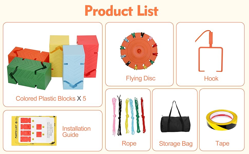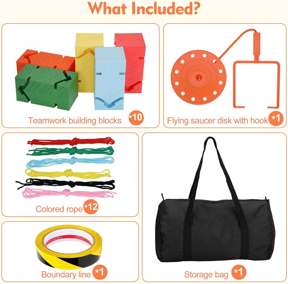 • يتضمن المنتج - مجموعة مكعبات بناء العمل الجماعي تأتي مع كل ما تحتاجه: 5* مكعبات بلاستيكية ملونة، 12*رباط نايلون ملون، 1*شريط حدودي أصفر-أسود، 1*حقيبة تخزين سوداء، 1*طبق طائر مثقوب بخطافات. افتحه وابدأ في الاستمتاع بألعاب بناء الفريق مع الزملاء أو الأصدقاء أو العائلة على الفور