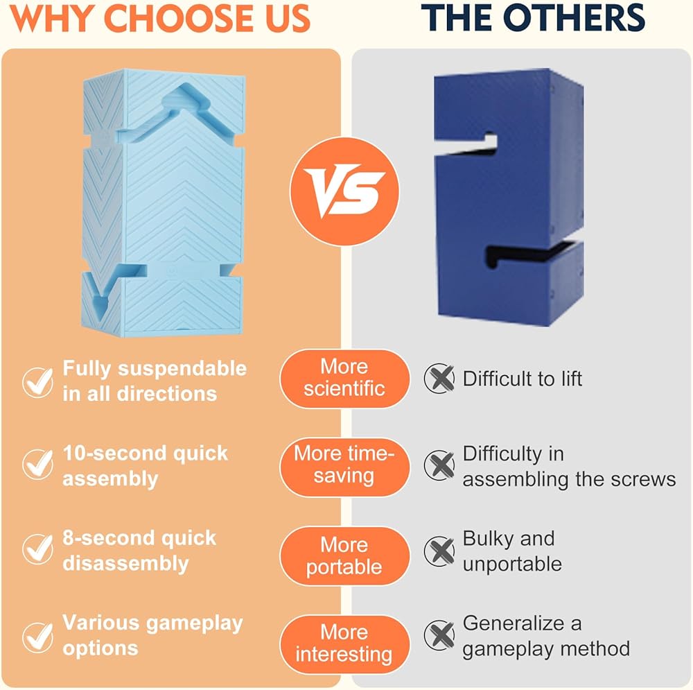 • تصميم جديد - مجموعة مكعبات بناء العمل الجماعي هذه المكونة من 5 قطع لا تتطلب براغي للتجميع والتفكيك السريع - مما يوفر وقتك وطاقتك، مثالية لأنشطة بناء الفريق المزدحمة. تتميز بفتحات متعددة الزوايا للتعليق بزاوية 360 درجة، وحجمها الصغير يأخذ مساحة صغيرة، مما يجعلها مريحة للغاية للحمل إلى الحفلات الخارجية أو الأيام الرياضية المدرسية أو نزهات فريق الشركات.