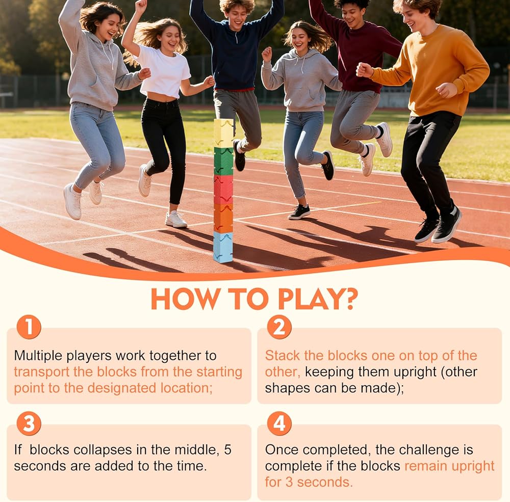• كيفية اللعب - تحتاج مجموعة ألعاب بناء الفريق هذه إلى 5-20 شخصًا للعمل معًا: قم بتكديس مكعبات بناء العمل الجماعي من خط البداية إلى المكان المحدد واحتفظ بها لمدة 3 ثوانٍ لتحقيق النجاح. انقسم إلى مجموعتين لـ PK - إذا سقطت الكتل، أضف 5 ثوانٍ إلى المؤقت؛ الفريق الذي لديه أقصر وقت يفوز، مما يعزز العمل الجماعي والإثارة
