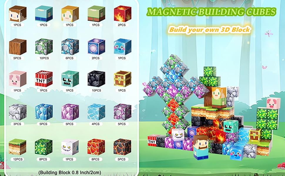 • 【مكعبات مغناطيسية】تم تصميم مكعبات البناء المغناطيسية مقاس 0.8 بوصة للأطفال من سن 3 إلى 10 سنوات، مما يوفر إمكانيات إبداعية لا حصر لها. لن تنهار مكعبات البناء المغناطيسية هذه بسهولة أثناء البناء، ويمكن دمجها بحرية لبناء أي شيء يتخيلونه، مما يعزز نمو إبداع الأطفال.