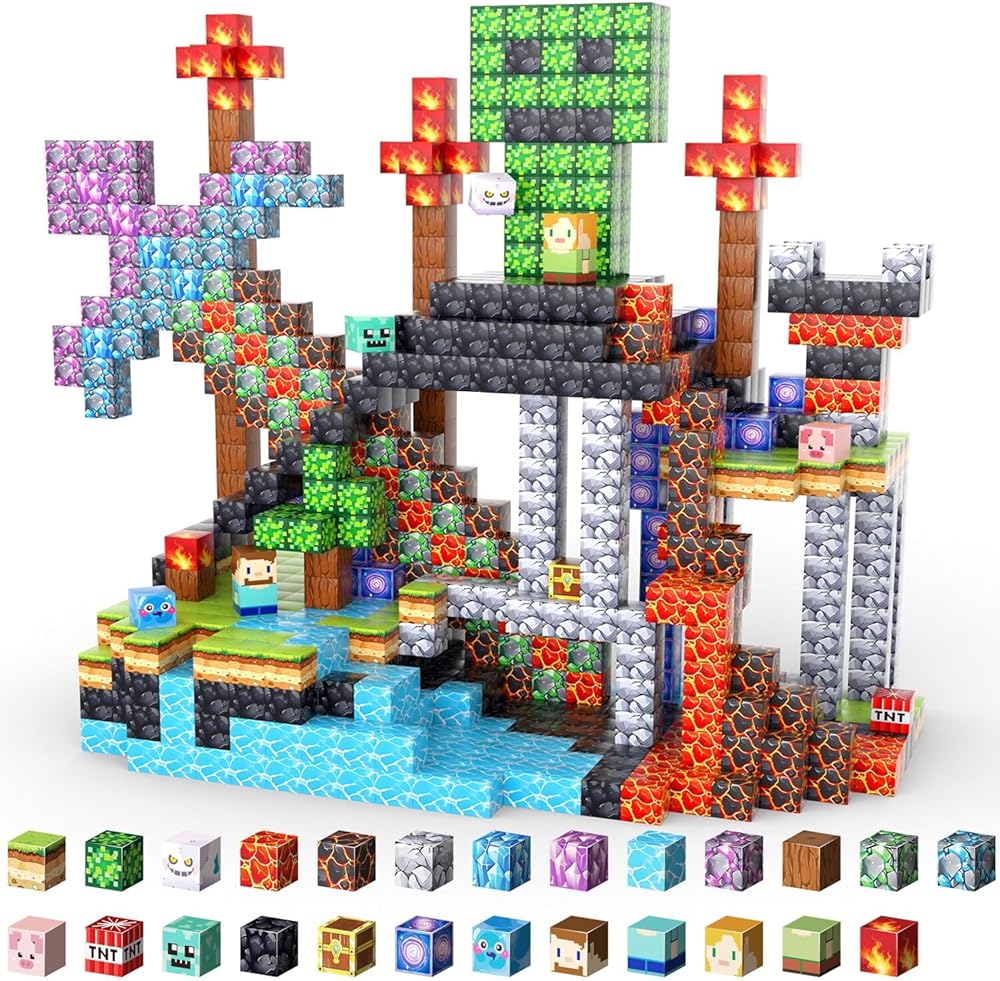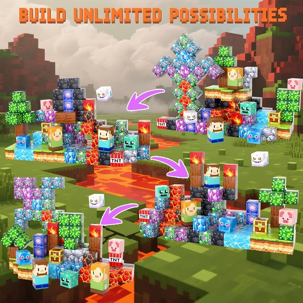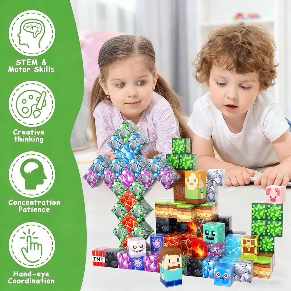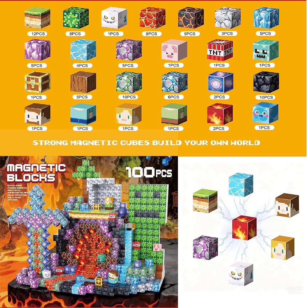 100 قطعة من المكعبات المغناطيسية من UGY - بناء عالم المغناطيس الخاص بالألغام، مكعبات بناء مغناطيسية للأطفال الذين تتراوح أعمارهم بين 4-6 و6-8 و8-12، ألعاب حسية تعليمية STEM للأولاد والبنات