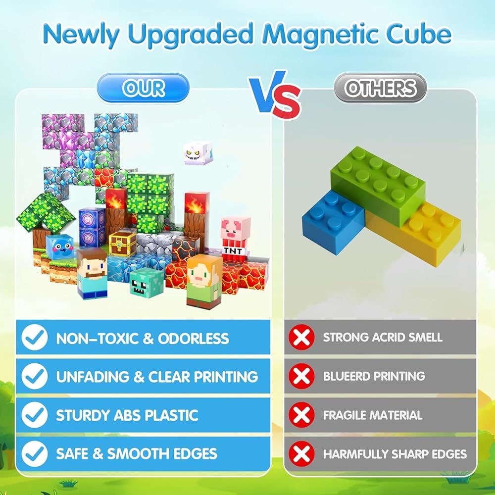 • 【قوية ومتينة】تتميز الكتل المغناطيسية بـ 8 مغناطيسات مدمجة لكل قطعة، مما يضمن بناء قوي ومستقر ومرن. بفضل تقنية الحافة المختومة والهياكل المقاومة للكسر، تعمل الكتل المغناطيسية على القضاء على مخاطر الكسر، وتمكين الأطفال من إطلاق العنان للاستكشاف الإبداعي!