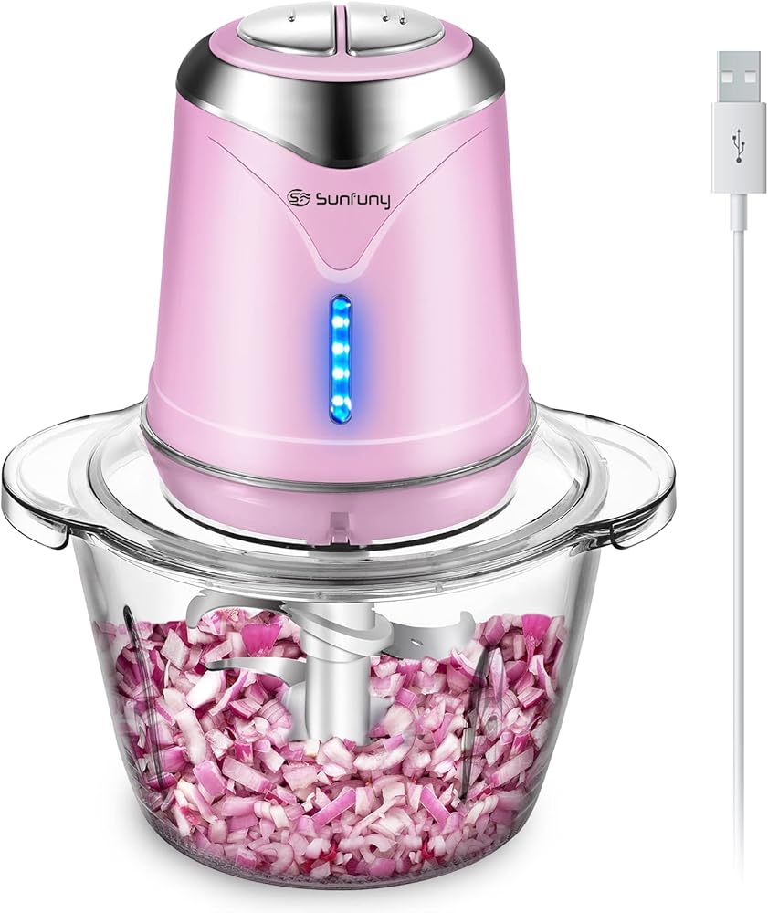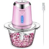 محضر طعام، مفرمة خضروات لاسلكية بقدرة 6000 مللي أمبير في الساعة مع وعاء زجاجي سعة 5 أكواب، مفرمة لحم ثوم كهربائية خالية من مادة BPA، خلاط مطبخ صغير ومفرمة مع 4 شفرات، سرعتان (وردي)