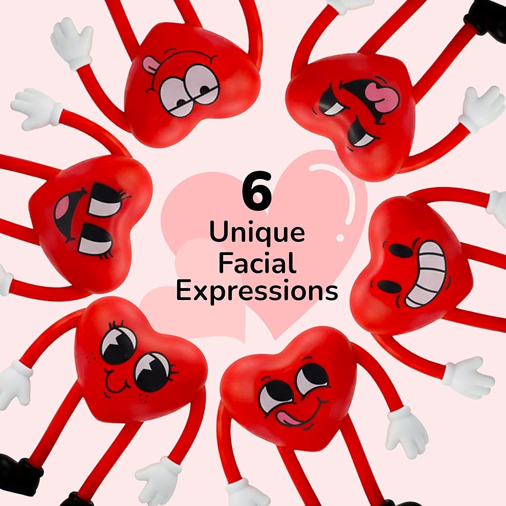 انشر الحب: متعة مليئة بالقلب تناسب راحة يدك! تأتي كل مجموعة مع 12 لعبة عيد الحب قابلة للانحناء تتميز بتعابير وجه أبله، مثالية لإثارة الفرح واللعب الخيالي بسحر لا نهاية له.