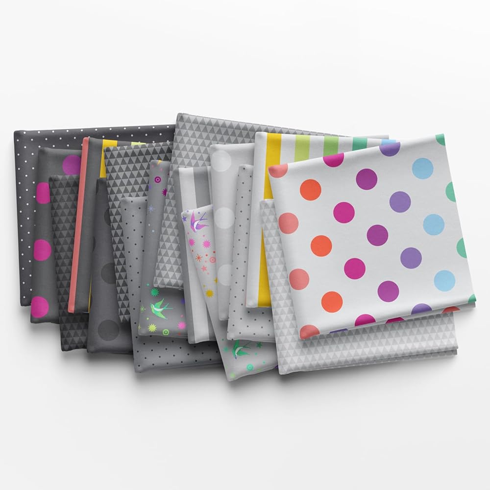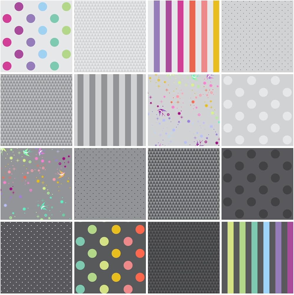 Includes 16 pieces from the True Colors - Graywork collection by Tula Pink for FreeSpirit.