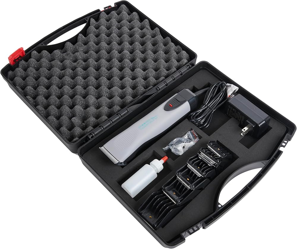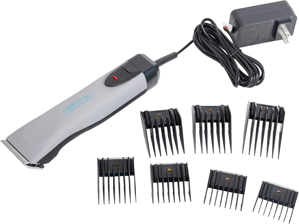 The Groomer Essentials Corded Clipper is lightweight and very well balanced. It has two cutting speeds (3,200 / 4,000 RPM) and is compatible with all A5 snap on blades. The clipper comes with a #10 steel blade, 4 guide combs, and an 11 ft. power cord. The #10 blades are ideal for very short summer haircuts and for clipping inside the ears, around the backside and under the hind legs of any breed.