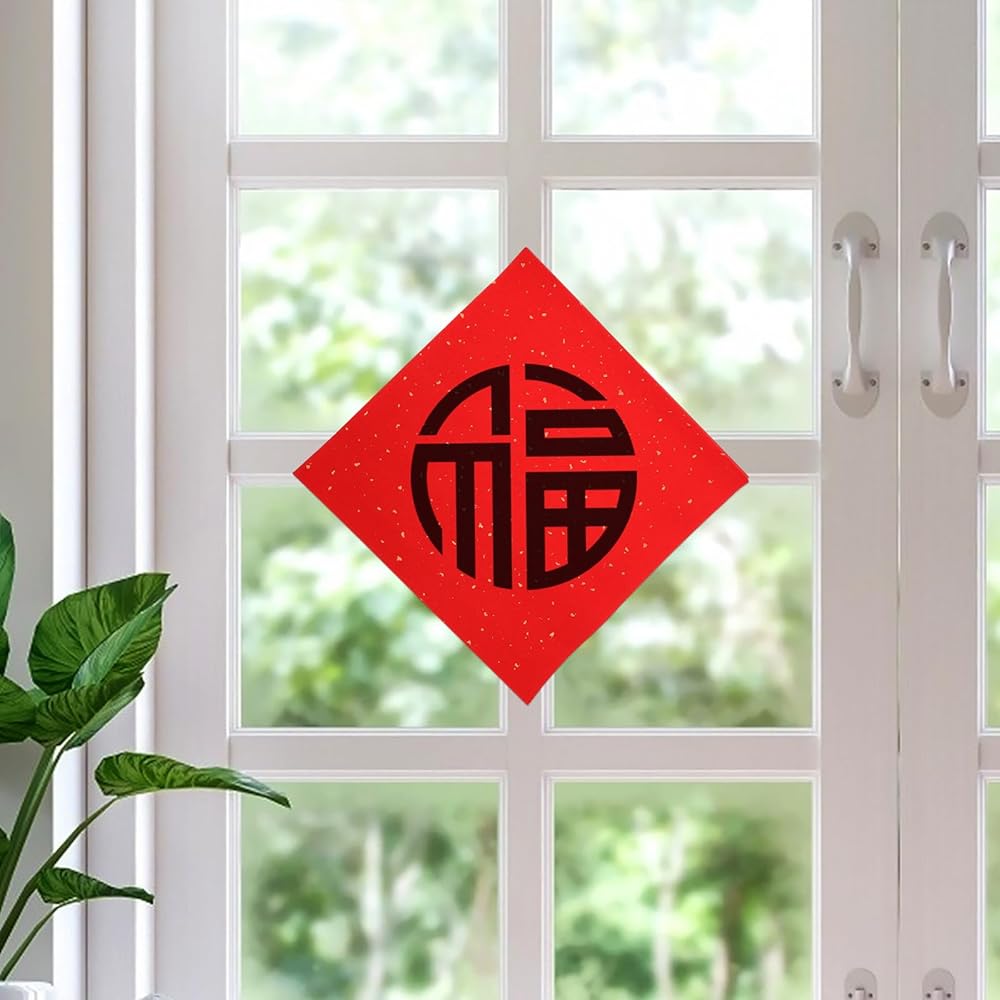 Use these red Fu character paper sheets to create New Year decorations, enhancing your holiday environment with traditional Chinese elements Perfect for family reunions, festive banquets, community events, or as unique party supplies The paper is easy to cut, fold, and paste, allowing you to craft wall stickers, couplets, and other that celebrate good fortune and happiness