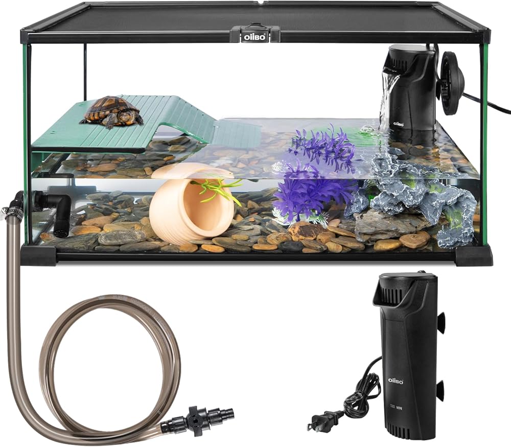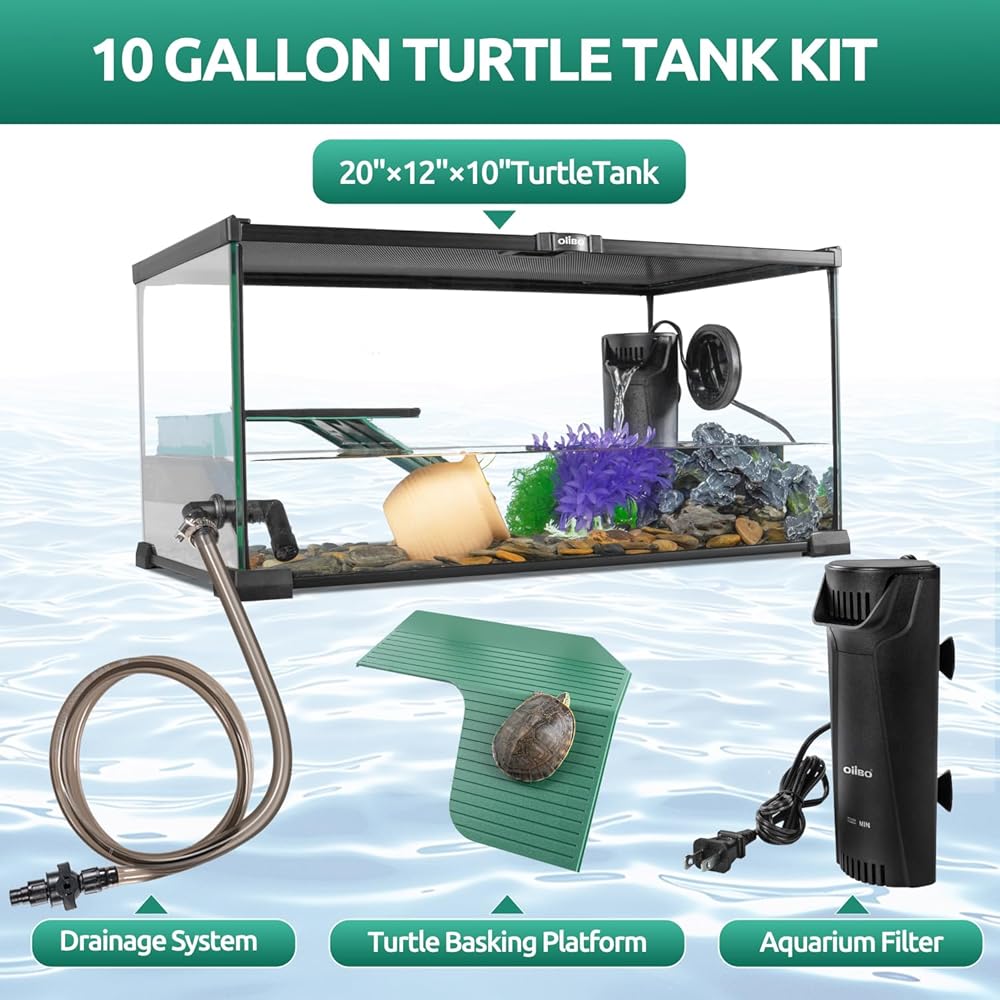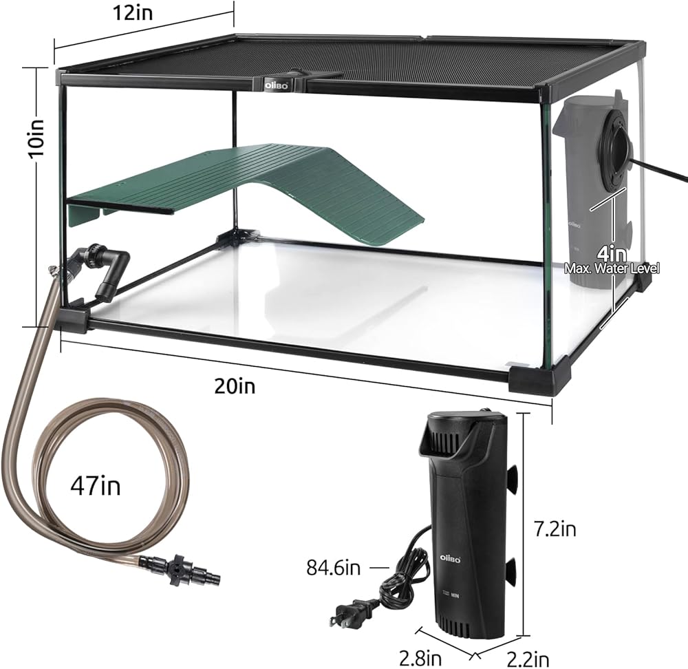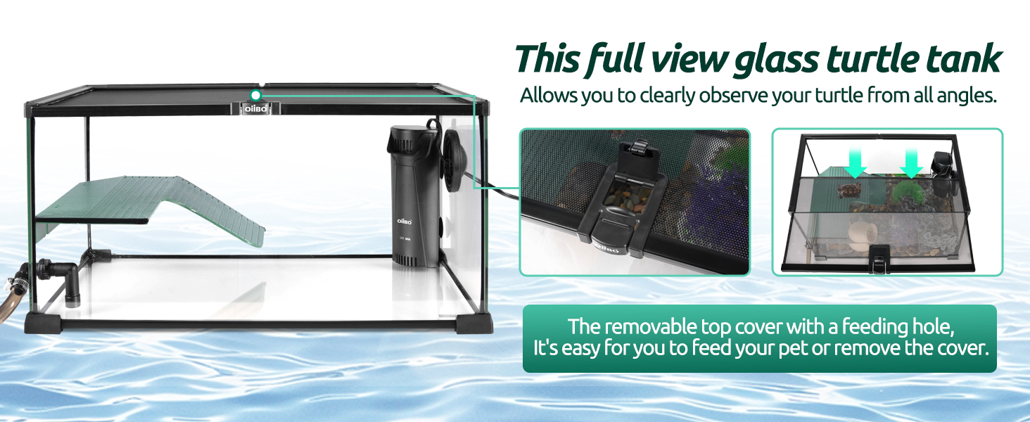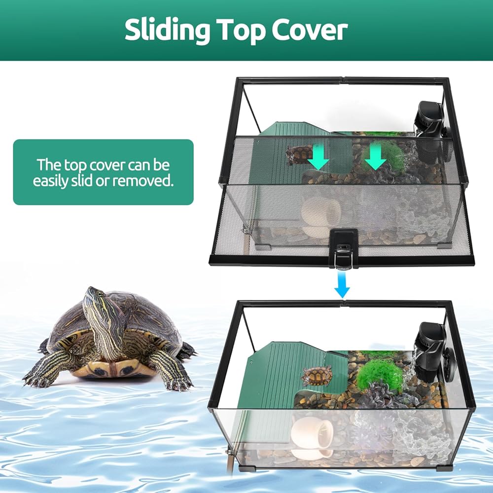 【خزان سلحفاة زجاجي سعة 10 جالون】- مصنوع من الزجاج الفاخر. يتيح لك خزان السلحفاة ذو الرؤية الكاملة هذا مراقبة سلحفاتك بوضوح من كل زاوية. يتميز الغطاء العلوي القابل للإزالة بمنفذ تغذية لسهولة التغذية أو الوصول.