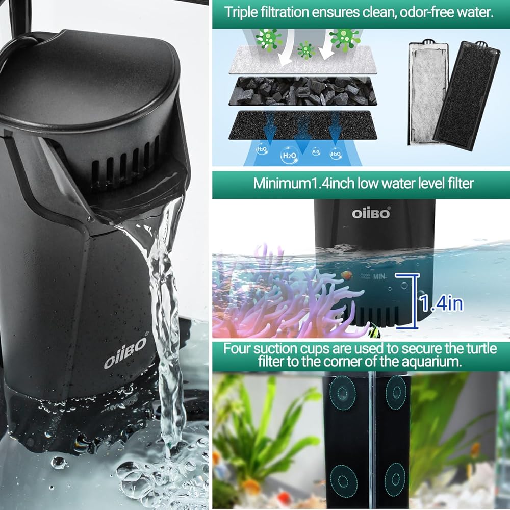 【حوض سمك السلحفاة مع فلتر】- يتم ربط فلتر خزان السلحفاة هذا بسهولة بزاوية الخزان باستخدام أكواب الشفط، مما يشغل الحد الأدنى من مساحة المياه ويسبب الحد الأدنى من الإزعاج لمشهد الخزان. تعمل خرطوشة الفلتر السميكة الحيوية ثلاثية الطبقات على إزالة الشوائب بشكل فعال، وامتصاص الروائح، وتنقية المياه، مما يوفر لأحواض السمك الخاصة بك مياه نظيفة وخالية من الروائح.