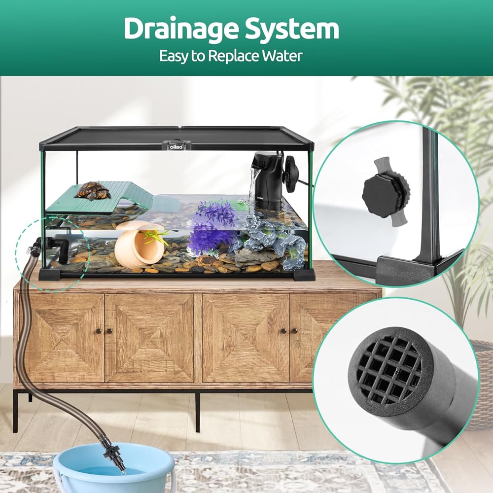 【سهولة تغيير الماء والحفاظ على نظافته】- خزان السلحفاة هذا مجهز بجهاز تصريف، مريح لتغيير الماء. تساعد هذه الميزة في الحفاظ على الموطن طازجًا، مما يقلل الحاجة إلى التفكيك المتكرر ويضمن بيئة أكثر صحة لسلحفاتك.
