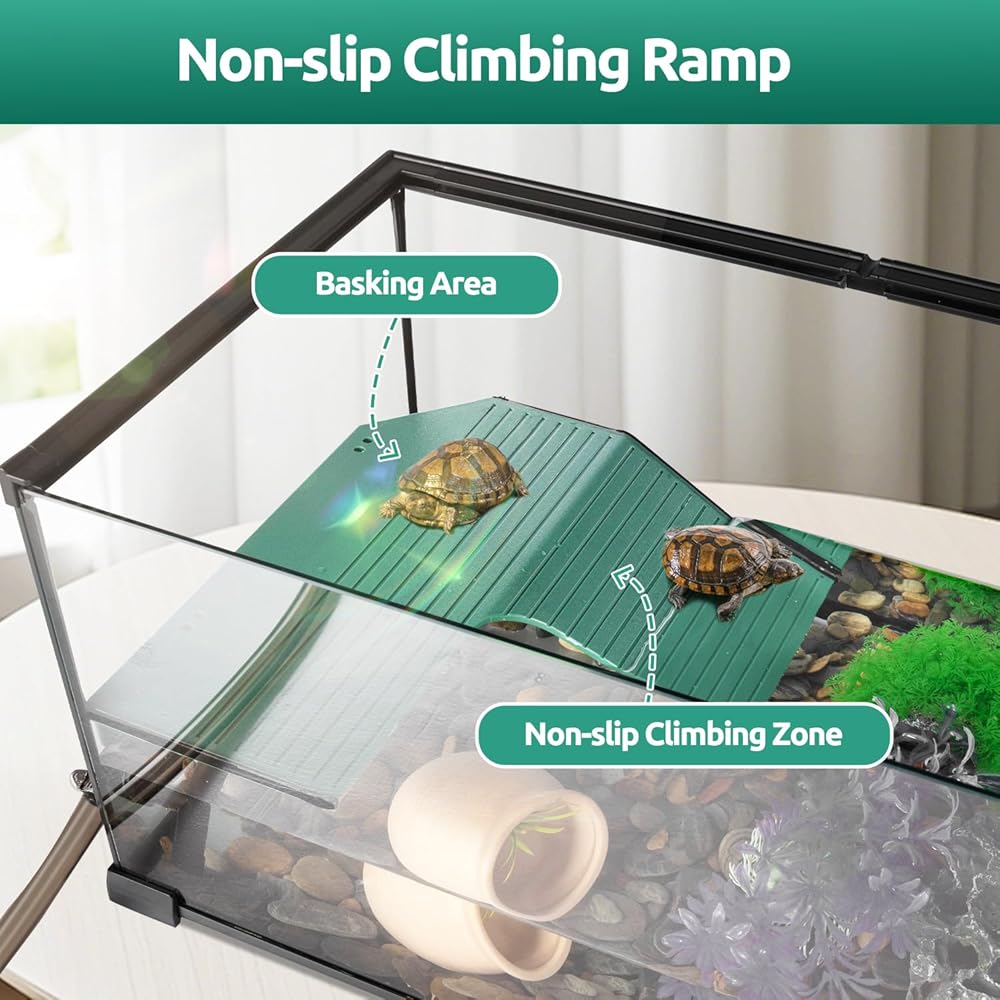 【موطن متعدد الوظائف】- يدعم خزان السلحفاة المائية هذا السلوكيات الطبيعية للسلحفاة مع مناطق مخصصة للسباحة والتشمس والتسلق. ويعزز تصميمه المخطط جيدًا النشاط والاسترخاء، مما يخلق بيئة غنية.