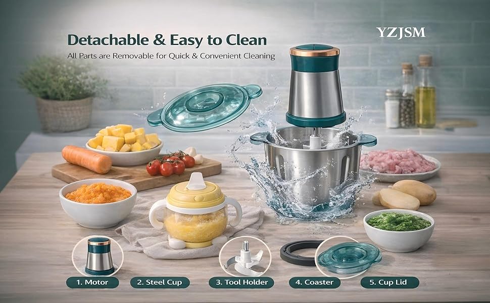 تنظيف سهل: أحدث ثورة في روتين التنظيف الخاص بك من خلال نظام التفكيك المبسط الخاص بنا. تنفصل آلية الطحن بأكملها إلى 5 مكونات أساسية فقط في ثوانٍ، جميعها مصنوعة من الفولاذ المقاوم للصدأ بدرجة 304 الآمن غذائيًا مع أسطح سلسة. تعمل هذه الأجزاء الآمنة للغسل في غسالة الأطباق على التخلص من البقايا التي يصعب الوصول إليها، مما يجعل الصيانة سريعة وشاملة.