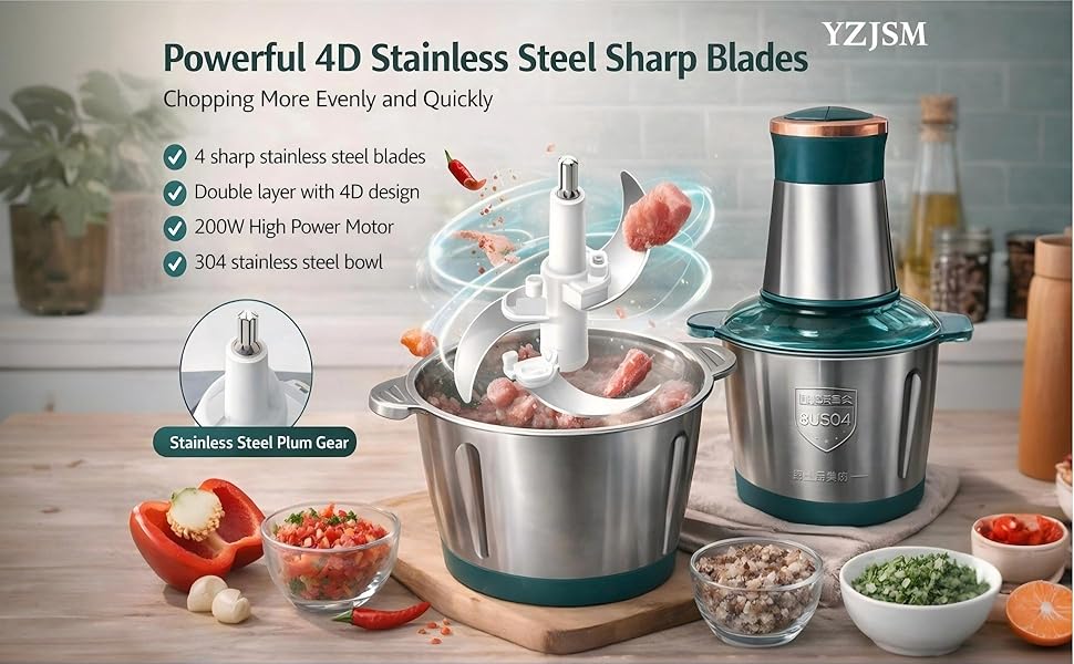 محرك نحاسي قوي بقدرة 300 واط وطحن في 4 ثوانٍ: استمتع بكفاءة لا مثيل لها مع محرك النحاس النقي القوي بقدرة 300 واط، المصمم لعزم الدوران العالي والمتانة الاستثنائية. مجهزة بشفرات مزدوجة الطبقات من الفولاذ المقاوم للصدأ ذات 4 نقاط، تقوم هذه المطحنة بمعالجة ما يصل إلى 1 رطل من اللحم البقري القوي دون عناء في 4 ثوانٍ فقط، مما يوفر فرمًا ناعمًا ومتساويًا لجميع إبداعاتك في الطهي.