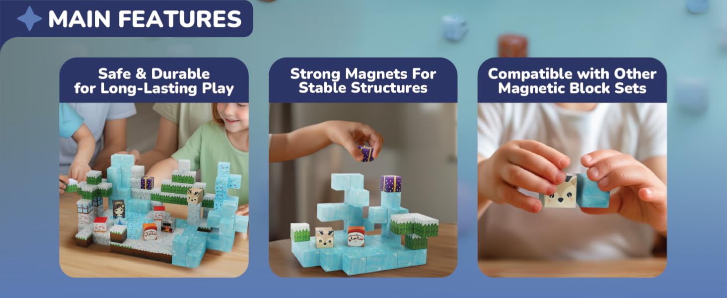 • 【مجموعات مكعبات قابلة للتوسيع والتخصيص】 تتوافق الكتل المغناطيسية الخاصة بالمناجم مع العلامات التجارية الأخرى لمجموعات البناء المغناطيسية. يمكنك بسهولة توسيعها أو مزجها مع كتل مغناطيسية أخرى مقاس 1 بوصة لتوسيع إمكانيات البناء. وهذا يسمح للأطفال بالاستمرار في إضافة المزيد من المكعبات والقطع إلى ترسانة البناء الخاصة بهم، مما يمكنهم من إنشاء هياكل أكبر وأكثر تعقيدًا. يمكنهم أيضًا تخصيص مجموعاتهم عن طريق مزج ومطابقة أنواع مختلفة من الكتل، مثل إضافة كتل زخرفية خاصة أو كتل وظيفية مثل الأبواب والنوافذ.