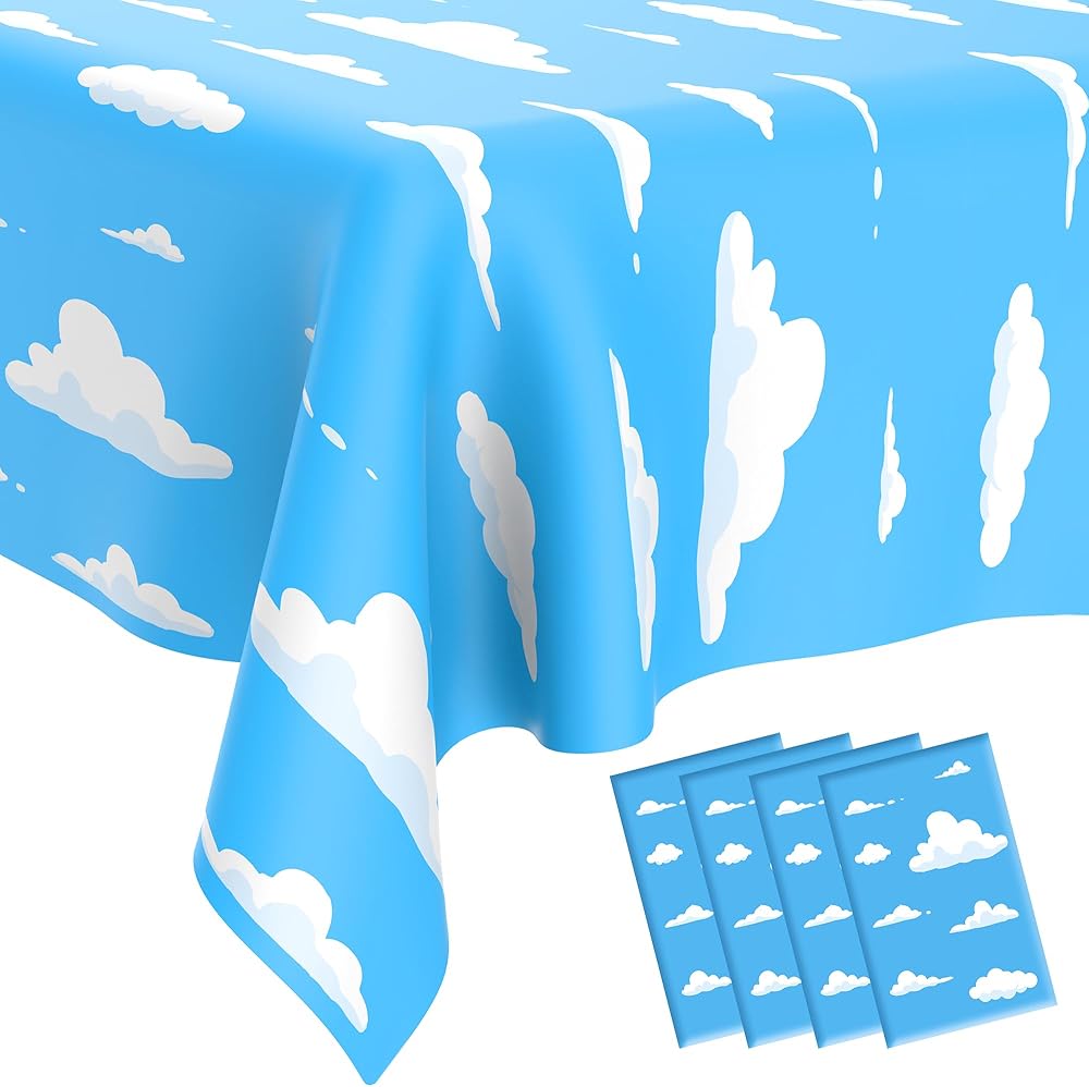 Package Includes: You will get 2 pieces blue sky white cloud tablecloths, printed with exquisite patterns, adorable white cloud patterns to increase more fun for kids birthday party, great for birthday baby shower themed party decorations