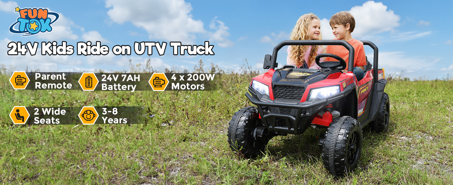 funtok 24v 2 مقاعد ركوب على ألعاب utv للأطفال الكبار، 4wd xl شاحنة قلابة للركوب مع جهاز تحكم عن بعد، محركات 4 × 200 واط، سرير تفريغ بمحرك، بداية ناعمة، 5 ميلا في الساعة، أضواء، بلوتوث، سيارات قابلة للقيادة للأطفال (أحمر) in Kuwait funtok 24v 2 مقاعد ركوب على ألعاب utv للأطفال الكبار، 4wd xl شاحنة قلابة للركوب مع جهاز تحكم عن بعد، محركات 4 × 200 واط، سرير تفريغ بمحرك، بداية ناعمة، 5 ميلا في الساعة، أضواء، بلوتوث، سيارات قابلة للقيادة للأطفال (أحمر) in Kuwait