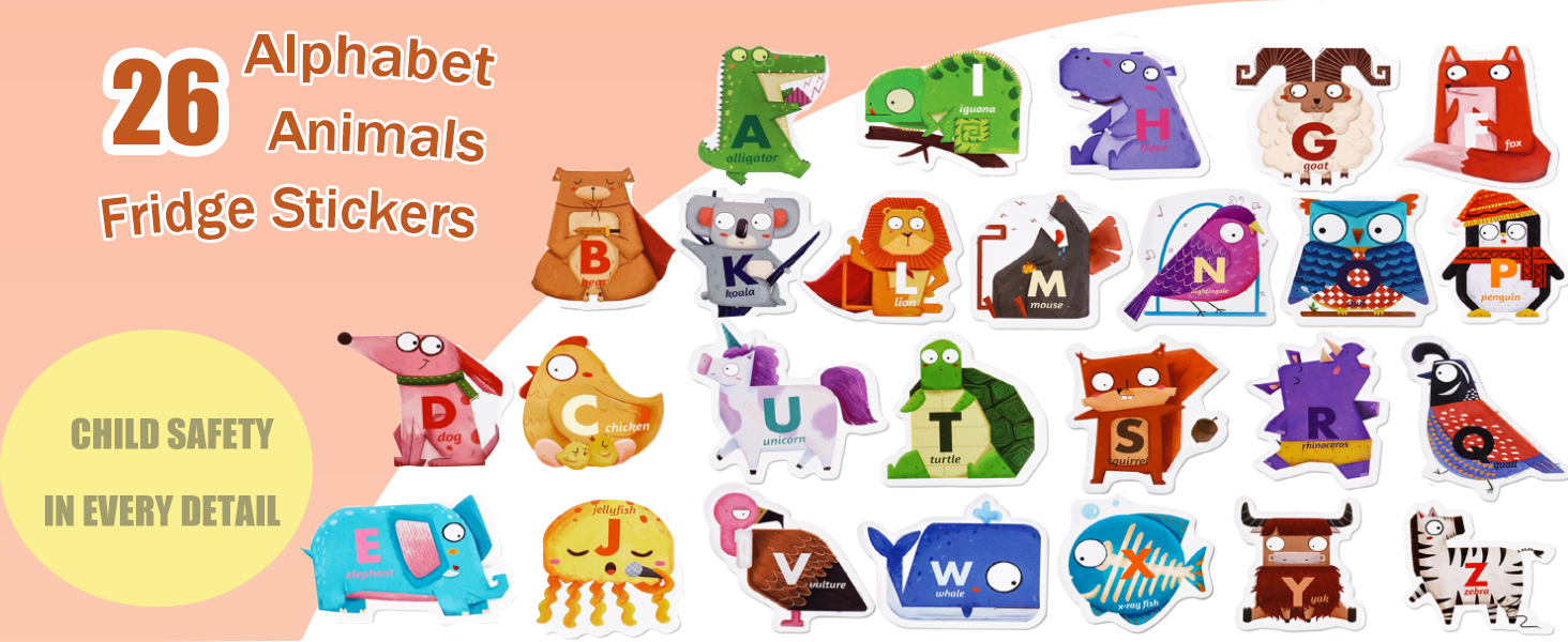 الحروف الأبجدية الحيوانية المغناطيسية 26 قطعة مغناطيس ABC لمرحلة ما قبل المدرسة تعلم التهجئة لطيف ألعاب الثلاجة للأطفال الصغار ألعاب التعلم هدية لعيد ميلاد عيد الميلاد يوم الأطفال