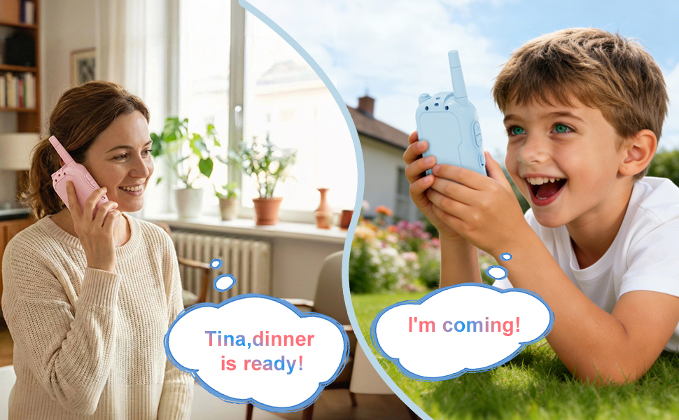 تصميم صديق للأطفال: جسم خفيف الوزن مصنوع للأطفال، مريح في الإمساك وسهل التشغيل. الاقتران التلقائي للقناة يعني التحدث فورًا عند التشغيل! لا يلزم إعداد معقد أو ضبط التردد. يمكن للأطفال استخدامها بشكل مستقل في لعبة الغميضة أو مواعيد اللعب أو الألعاب الخارجية