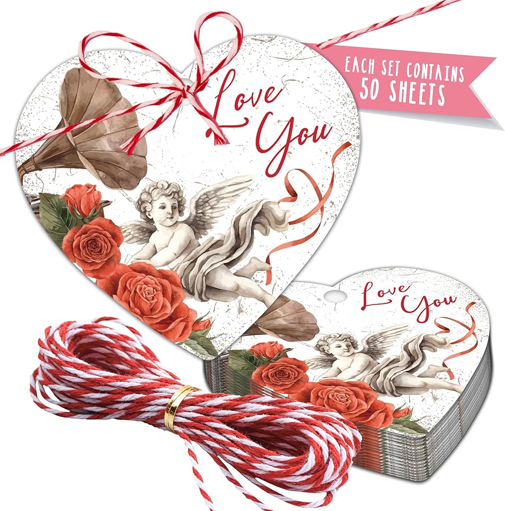 Size: You will receive 50 labels and a bundle of red and white twine. Each label is a 2.2-inch heart shape, perfect for your Valentine's Day needs.
