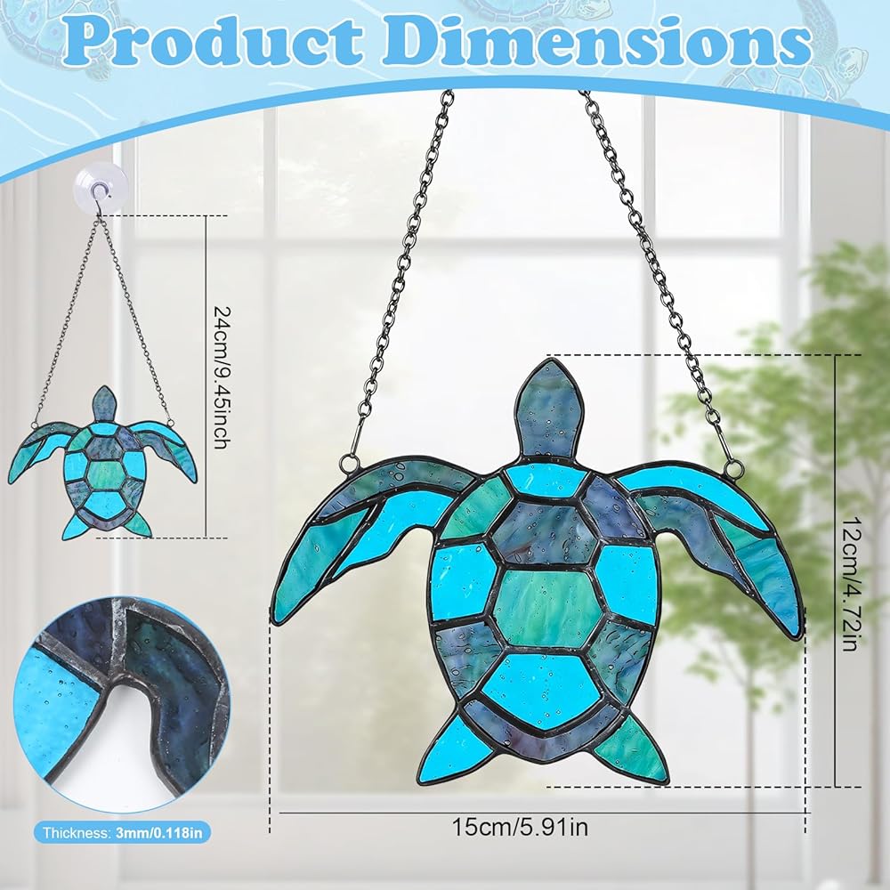 سلحفاة البحر 5.9 بوصة × 4.7 بوصة مجموعة من الزجاج الملون قبل القطع DIY حرفة للمبتدئين البالغين نافذة سلحفاة البحر الزرقاء معلقة مع سلسلة خطاف كأس الشفط جدار الفن ديكرو للمعلم مون الجدة صديق