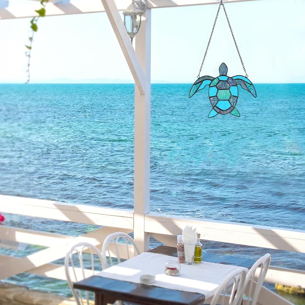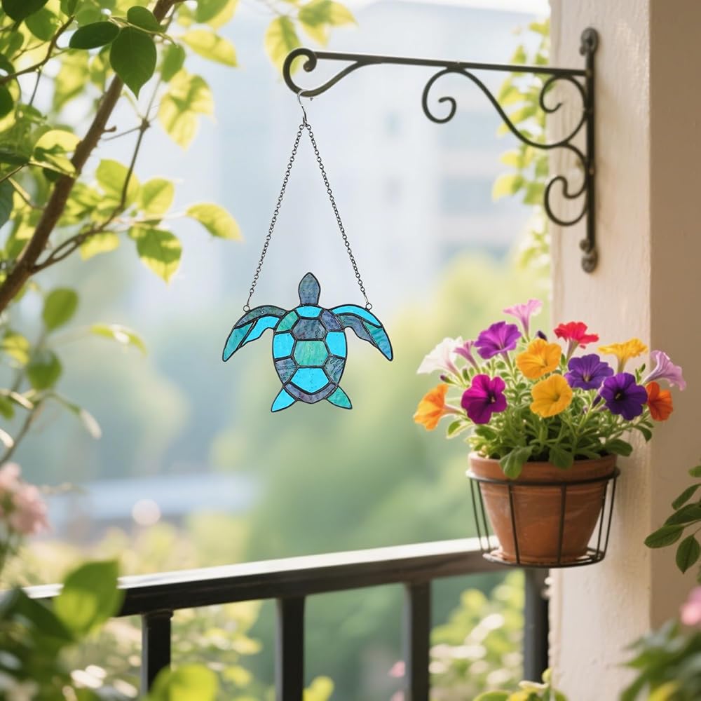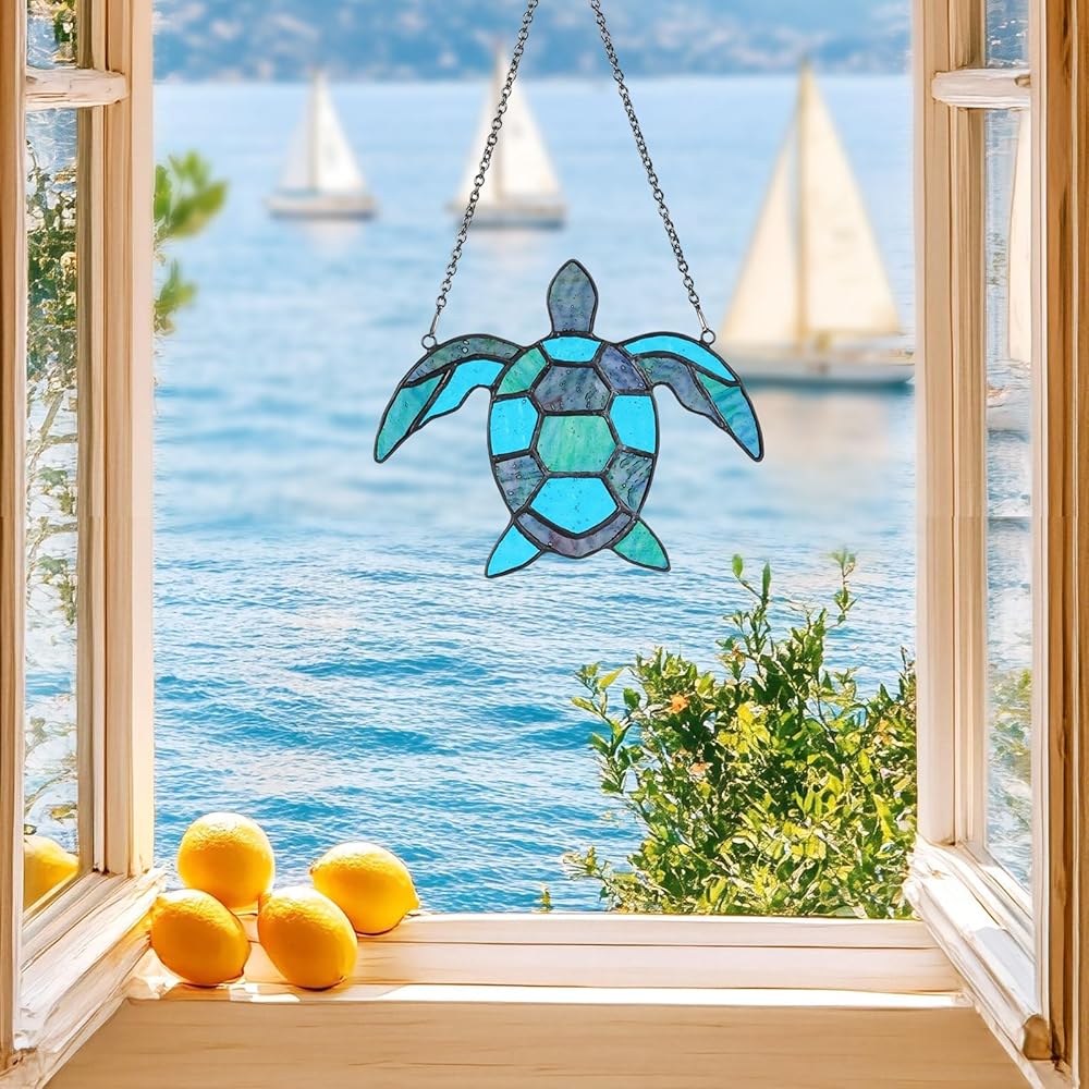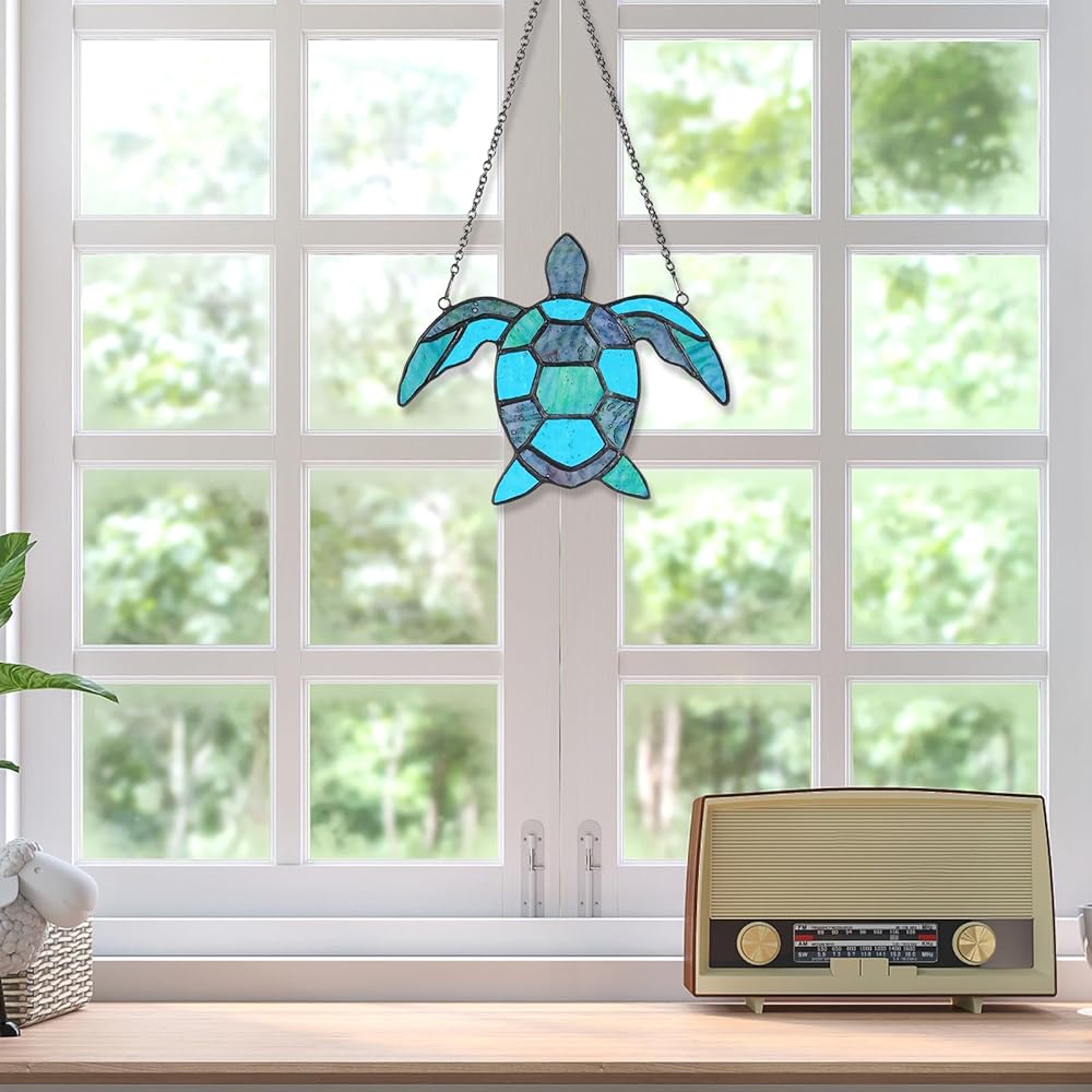 Turtle Light Catcher: The turtle shape symbolizes resilience and freedom, infusing spaces with a tranquil oceanic ambiance. Its light and shadow effects are both soothing and stunning. Sunlight filtering through the colored glass casts blue-green oceanic patterns that shift dynamically with changing light angles. This vibrant design adds character to windows and walls. Measuring 5.9×4.7 inches, this turtle ornament captures sunlight to cast warm, iridescent patterns throughout your room. Hang it by windows, on porches, or in gardens—it serves as both soothing home decor and a thoughtful handmade gift for birthdays or housewarmings