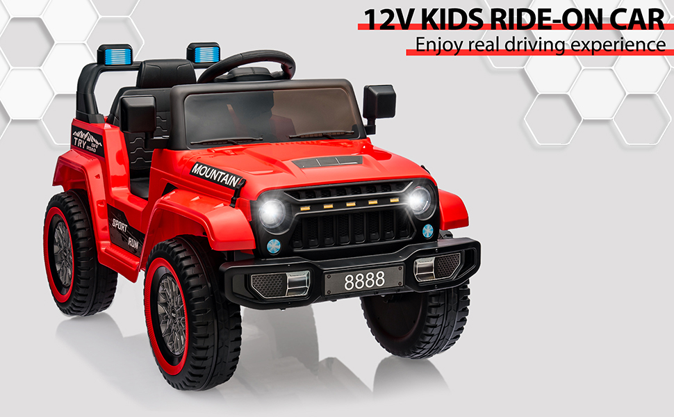سيارة ركوب للأطفال 12 فولت، سيارة كهربائية للأطفال مع جهاز تحكم عن بعد للوالدين، محركات مزدوجة 35 وات، 3 سرعات، أضواء LED، موسيقى وقرن، تعليق زنبركي، مركبات كهربائية هدية للأولاد والبنات من 3 إلى 5 سنوات، أحمر