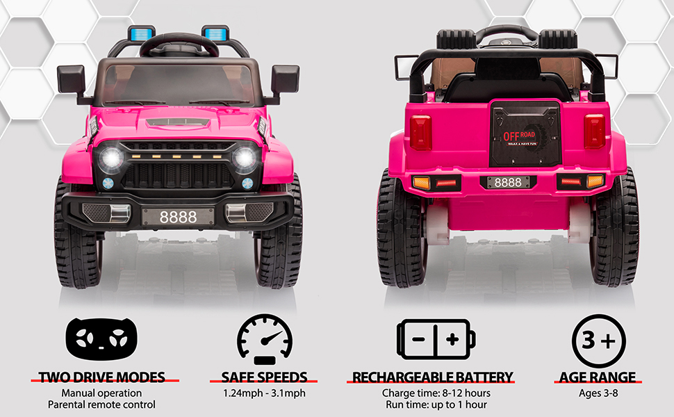 【بطارية قابلة لإعادة الشحن】السيارة التي تعمل بالبطارية 12 فولت مجهزة ببطاريات فعالة ومستقرة. يوفر محركان بقدرة 35 واط طاقة كافية وعمر خدمة طويل. تم تجهيز الزاوية اليمنى السفلية من عجلة القيادة بفتحة شحن آمنة، والتي يمكن توصيلها وشحنها مباشرة لتحسين السلامة. ملحوظة: تأكد من قراءة التعليمات بعناية قبل الاستخدام.